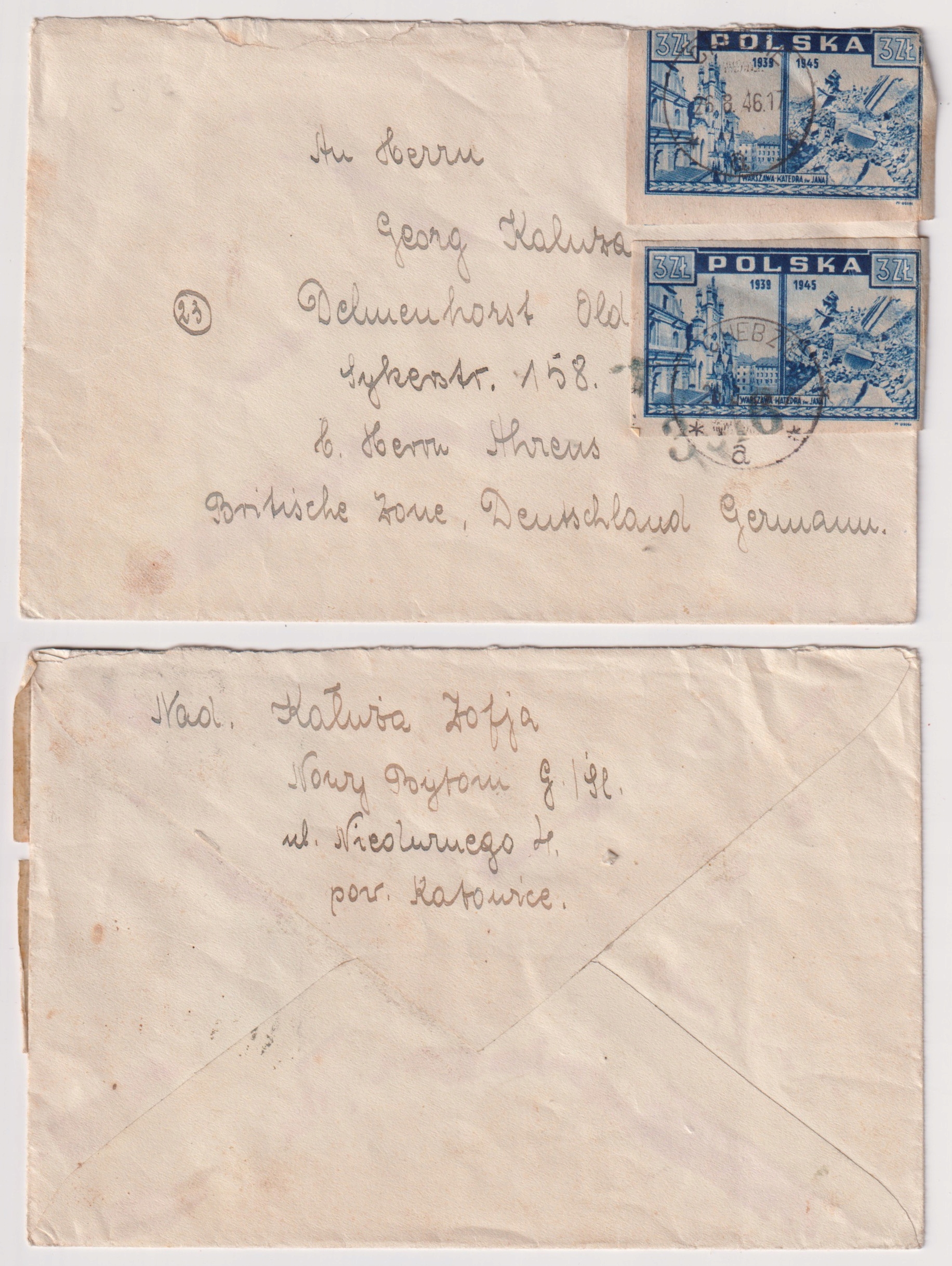 1945 CHEBZIE (NOWY BYTOM) list do brytyjskiej strefy okupacyknej