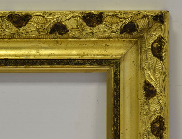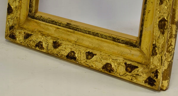 Стара декоративна дерев’яна рама в оригінальному стані, покрита сусальним золотим шлагметалом. Рама має унікальний вигляд і підходить для різних стилів малювання, а також для обрамлення дзеркала. Візуальний стан рами хороший, видно на фото нижче.