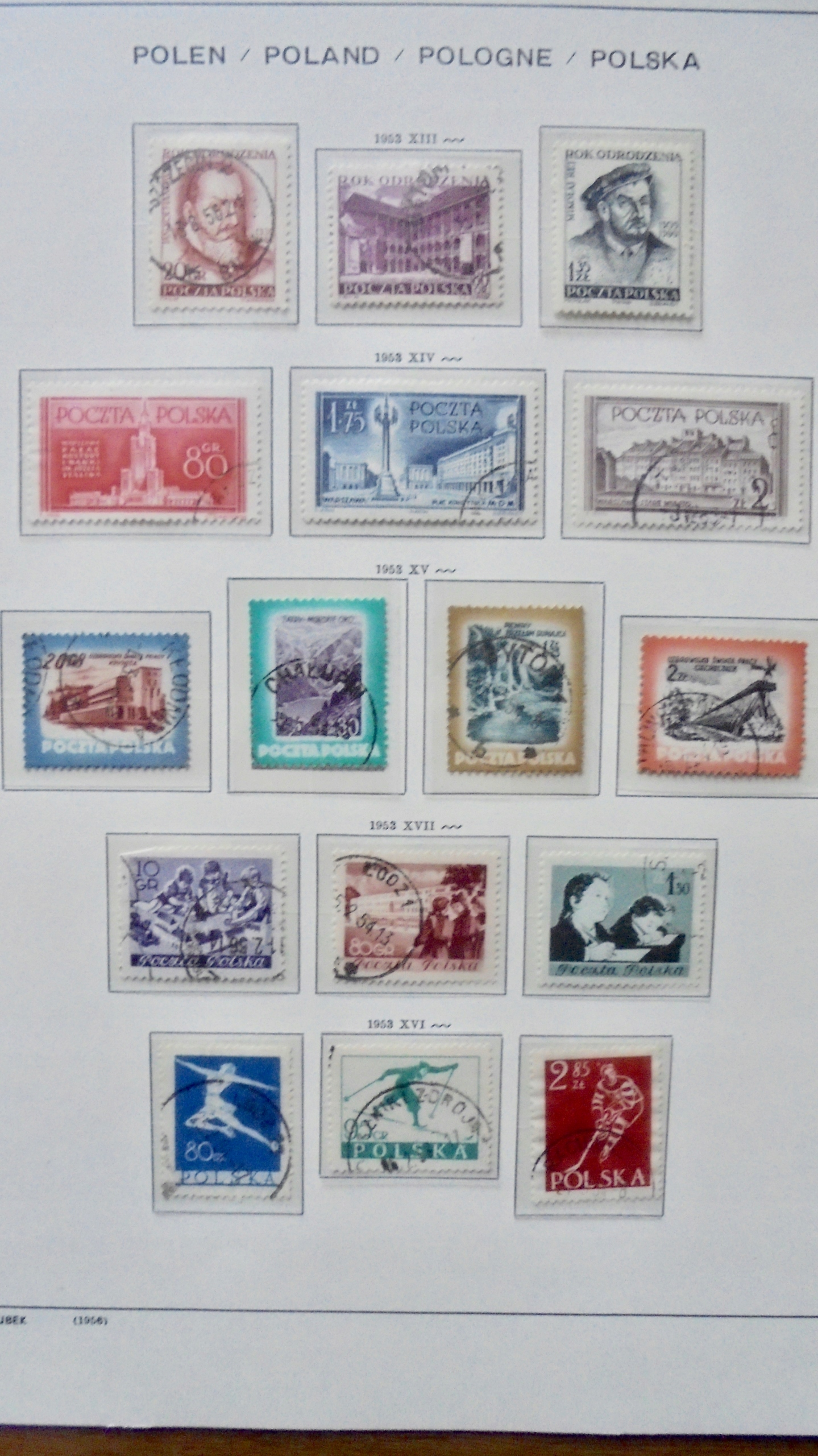 1953 Polska piękna KOLEKCJA znaczków kasowanych, 4-stron, wysoka wartość