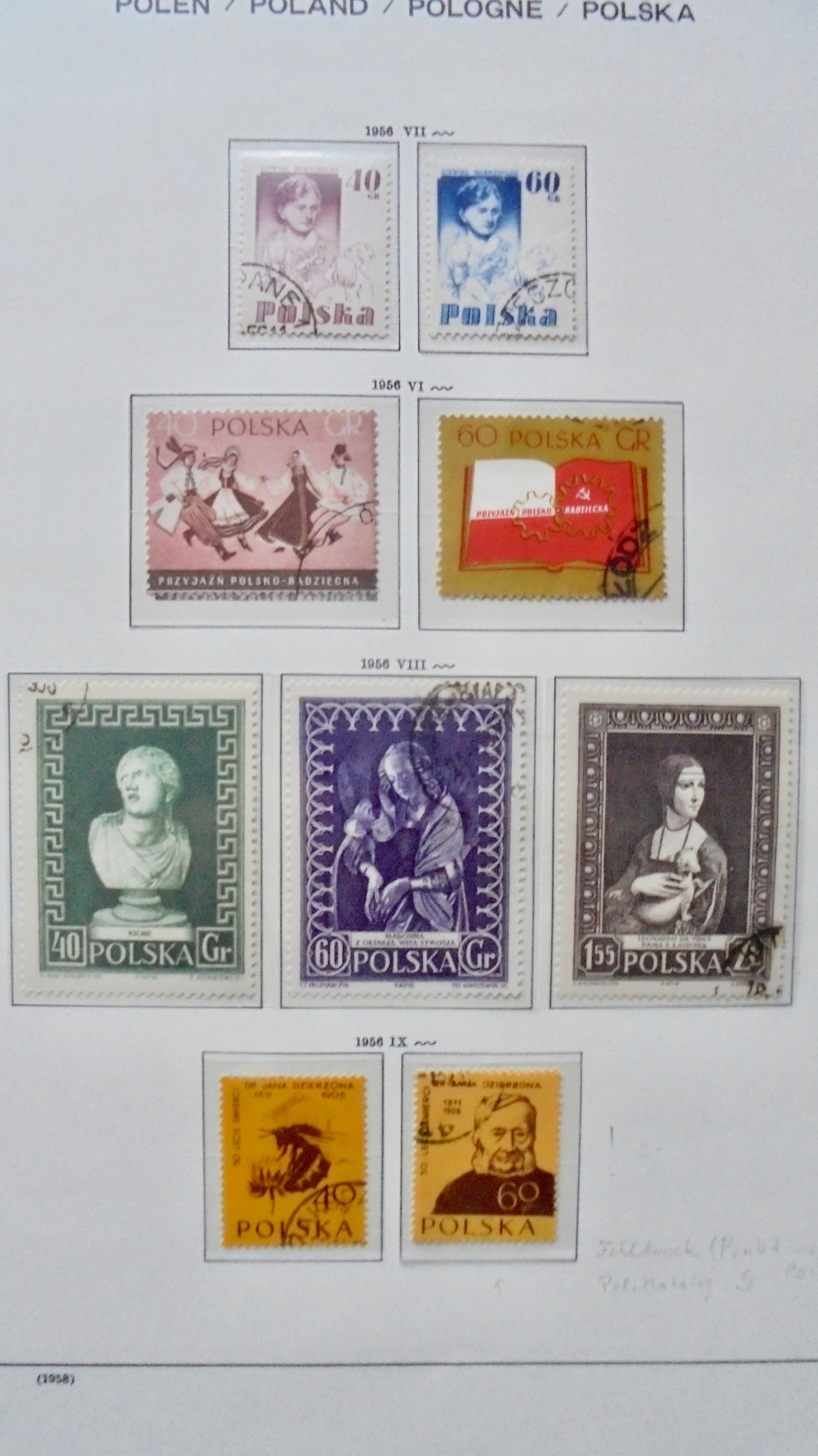 1956 Polska piękna KOLEKCJA znaczków kasowanych, 6-stron, wysoka wartość