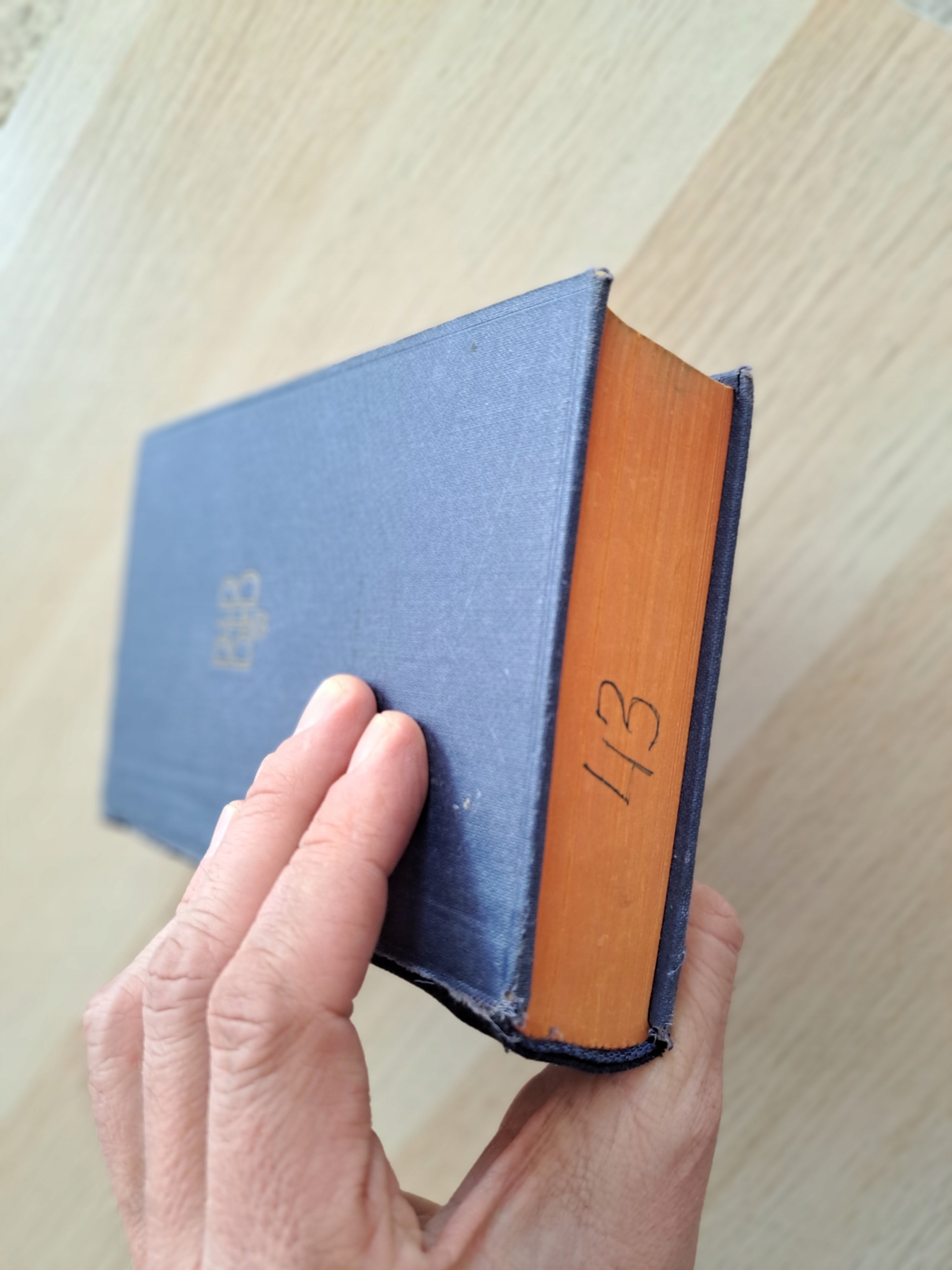 . Блок книги послідовний. Сторінки мають знебарвлення, характерні для віку книги. Номер 43, написане в нижній частині NECES сторінок. Спина не оригінальна.