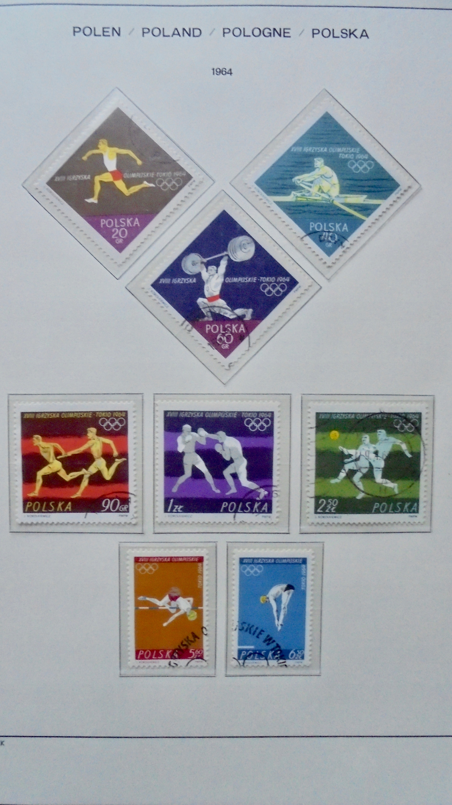 1964 Polska piękna KOLEKCJA znaczków kasowanych, 9-stron, wysoka wartość