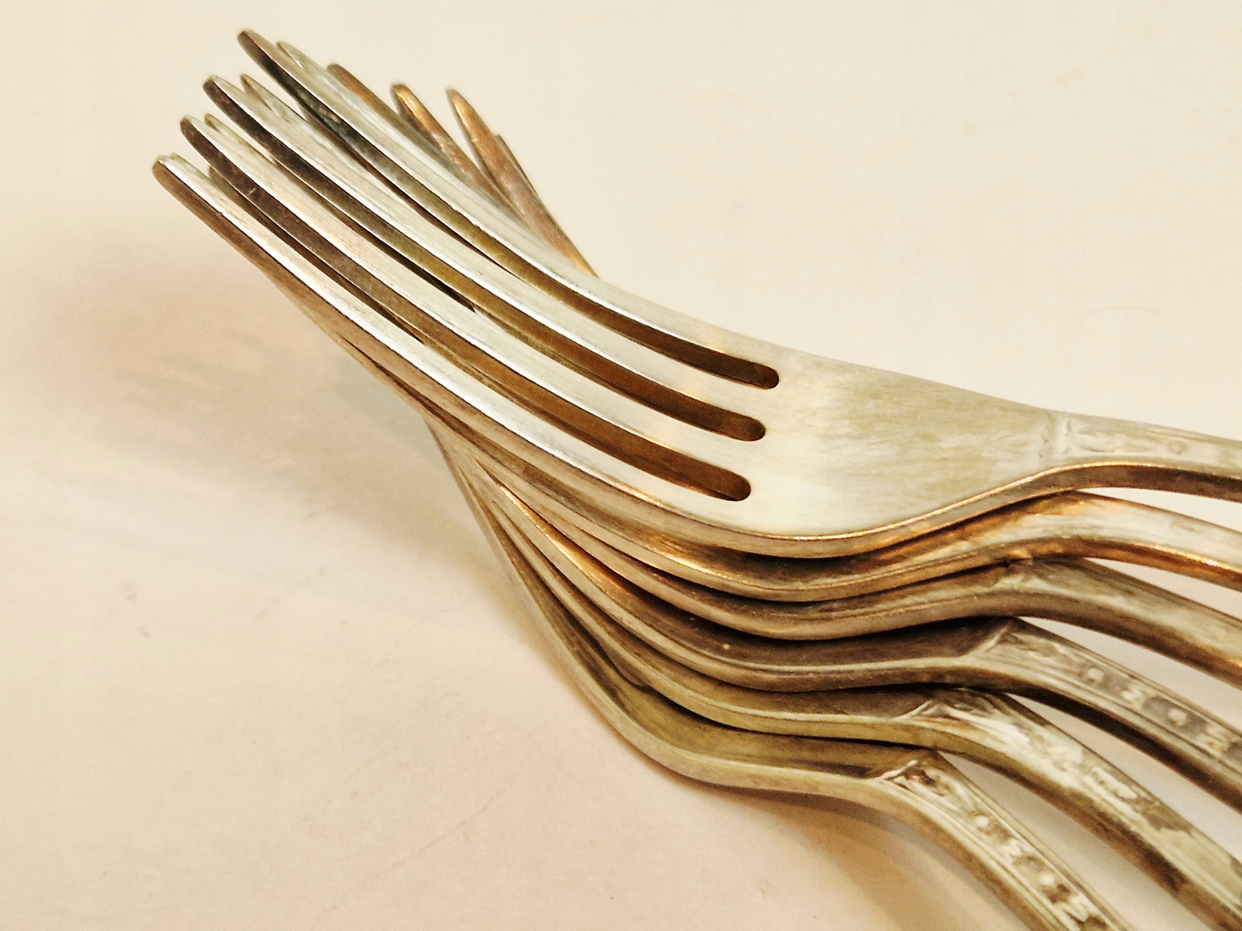 1970-1980-ті 20 століття ВИЛКИ (18,6 см) 6 шт. HEFRA FH MET-60 РОМАНСЬКИЙ ВЗІЗУНОК /2563