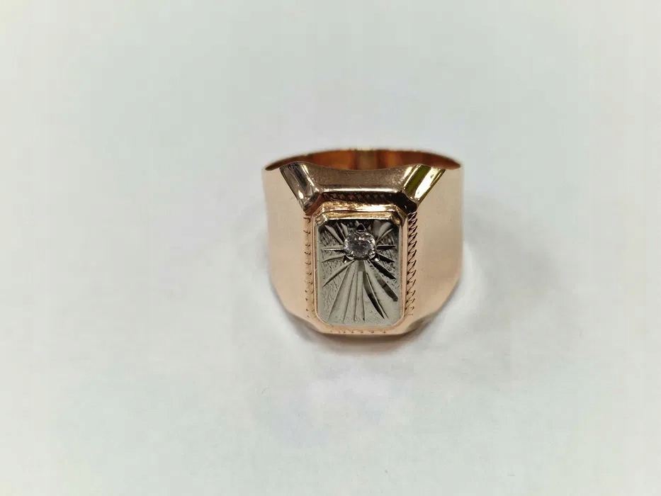 Предметом продажу є дуже гарна золота чоловіча каблучка з печаткою. Виготовлений повністю із золота 585 проби, чітко позначений: