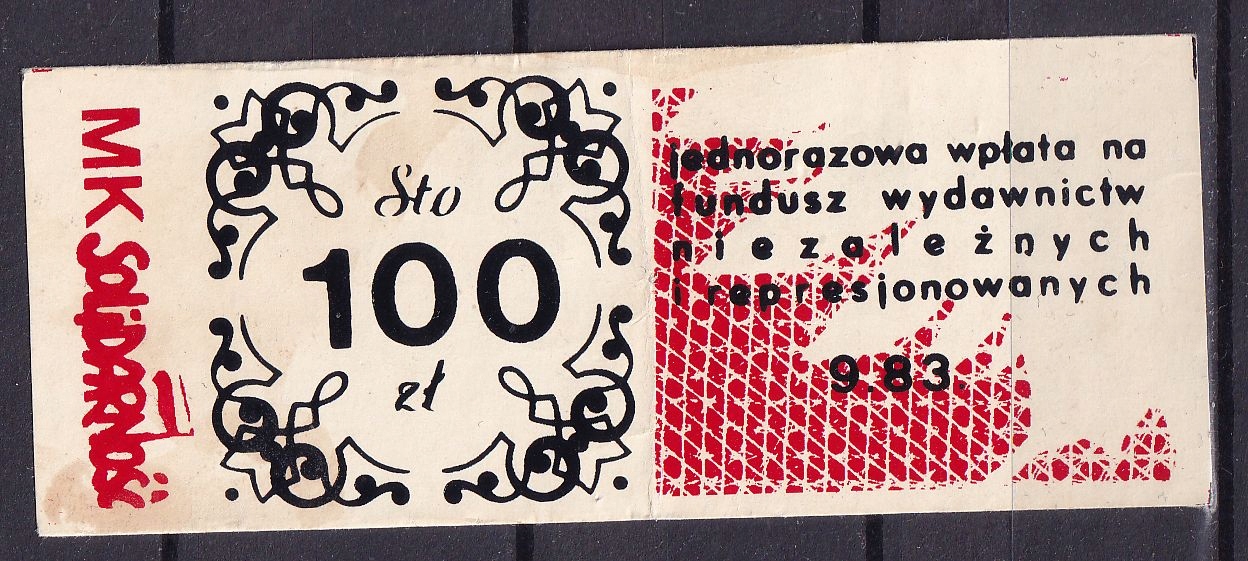 Оплачивая «1983 Wpłata na wydawnictwa niezależne» данный товар из каталога «Солидарность», вы можете получить дополнительную скидку 4%, если произведете 100% предоплату. Размер скидки вы можете увидеть сразу при оформлении заказа на сайте. Внимание!!! Скидка распространяется только при заказе через сайт.