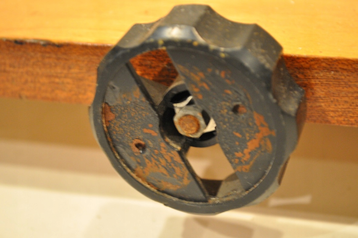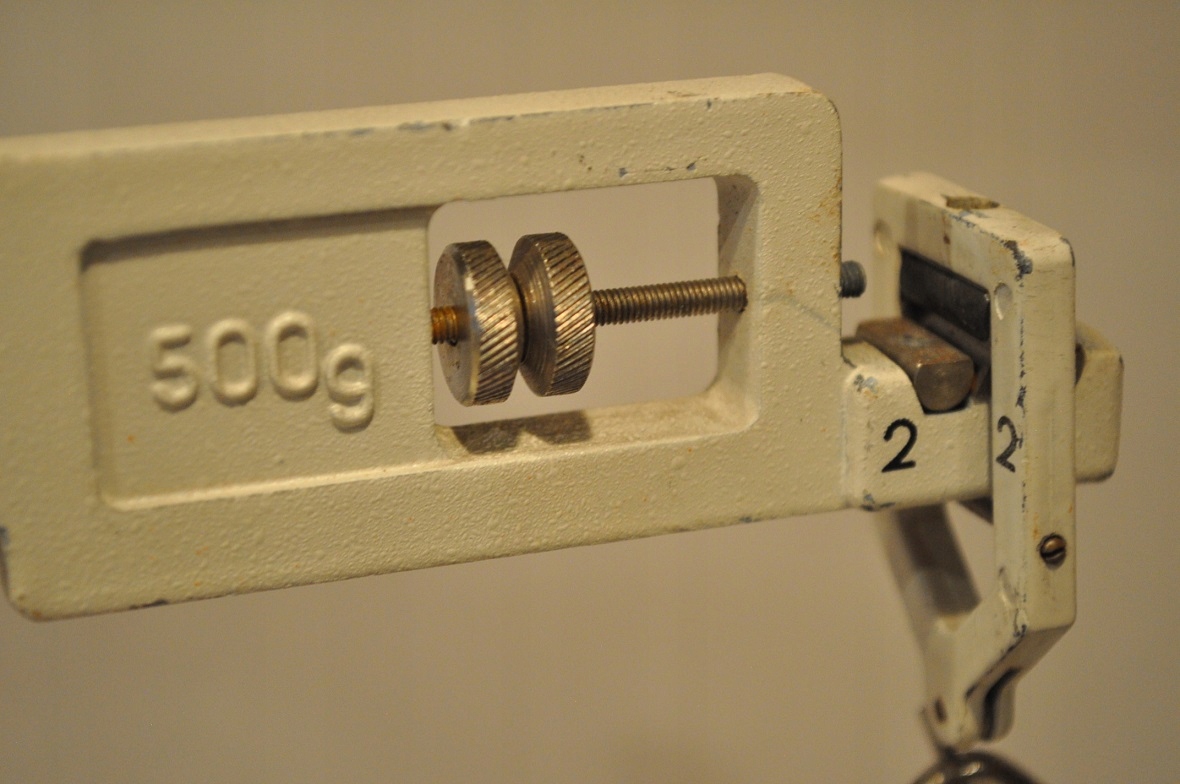 Пронумеровані чаші ваг — на них є невеликі іржаві плями.