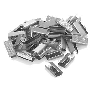 Скоба з листового металу (метал) використовується для з’єднання кріпильних стрічок при кріпленні вантажів на піддонах тощо. Знімач використовується для закриття металевих застібок.