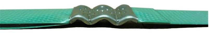 Металева застібка обжата на стрічці, завдяки чому стрічка міцно з’єднана, а пориста поверхня на застібці додатково захищає стрічку від вислизання.