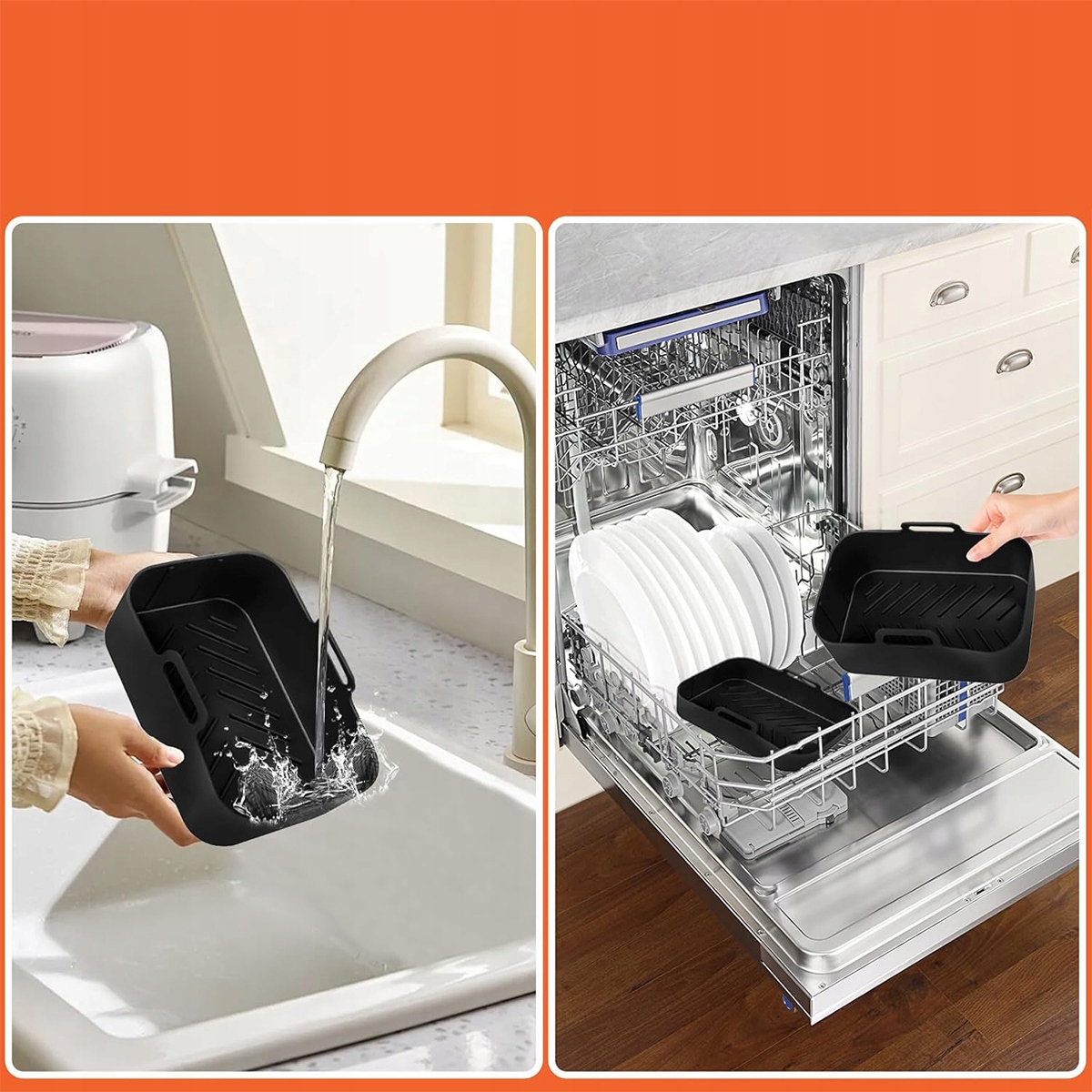 ✨ Аксесуари для виїзду для повітря -фридж можна промивати в посудомийній машині. Форма для випічки тіста покрита нерефлоновим покриттям. Для втирання не використовуйте міцну тканину або металеву кулю. Якщо аксесуари важко очистити, просто замочіть їх у теплій воді на деякий час, а потім очистіть. Можливість повернути структуру з обох боків, легке миття рук.