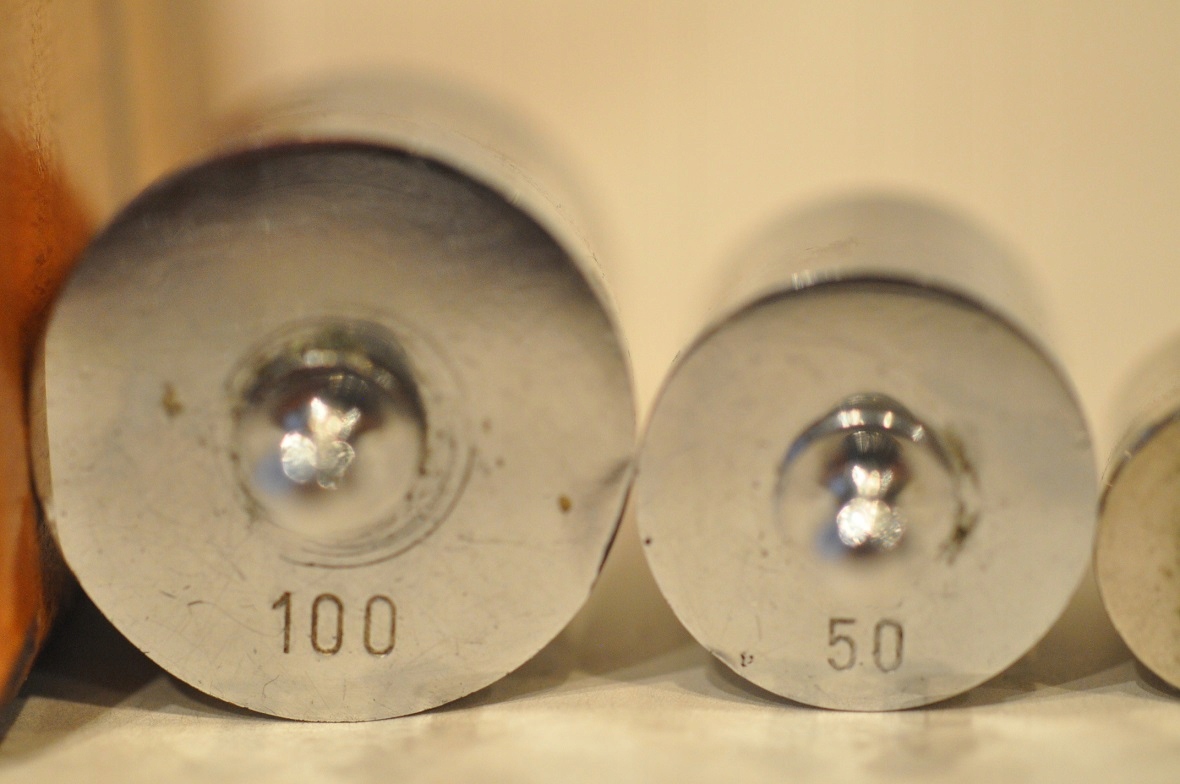 100-грамова гиря має одну більшу вм’ятину на верхньому краю.