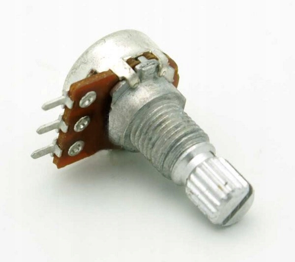 ротаційний потенціометр 1x50kbДовжина вісь: 15 мм Діаметр осі: 6 мм житло: метал Діаметр тіла: 13 мм Вихід: для друку Растрові: 3,81 мм Кут обертання: 300 ° Характеристики: лінійні Толерантність: +/- 20% Сила: 0,1 Вт Робоча температура: -10 ° C ÷ +70 ° C