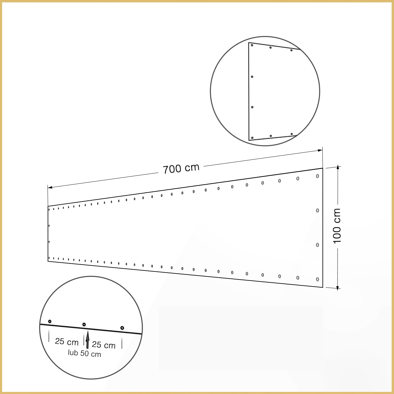 Стійкий - Завдяки оптимальному розташування металевих люверсів через кожні 50 см або 25 см за додаткову плату (чохол купується в комплекті з послугою встановлення додаткових люверсів) зверху, знизу та 4 люверси по краях матеріалу, чохли міцно прилягають до поверхні балкона, балюстради чи огорожі.