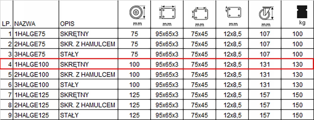 Колісна пара на пластині, код 1HALGE100K2, у таблиці під позицією 4.