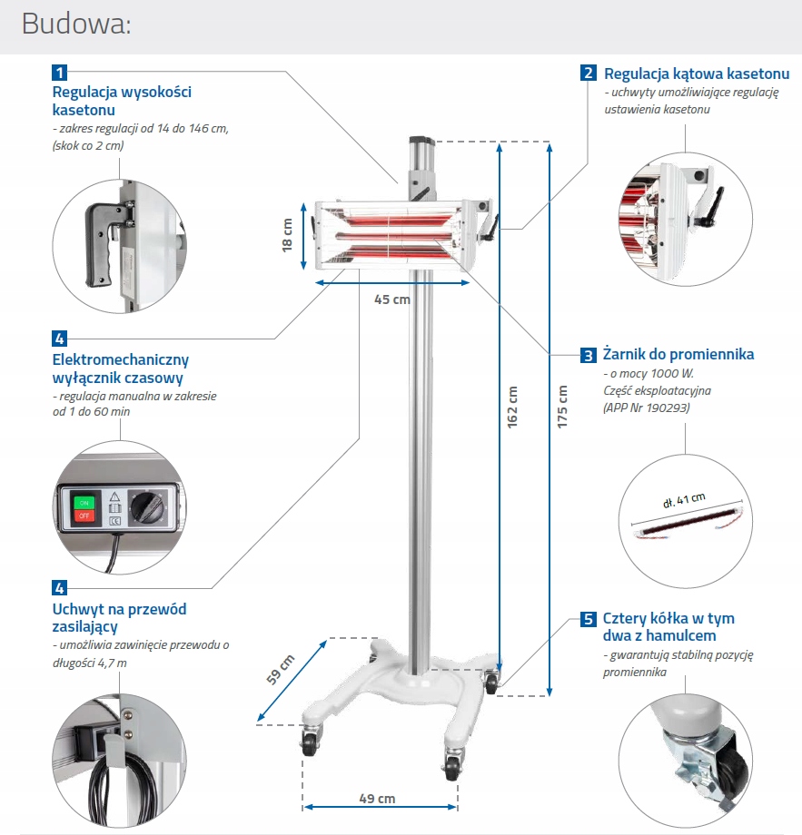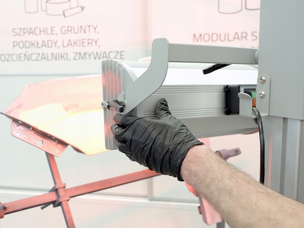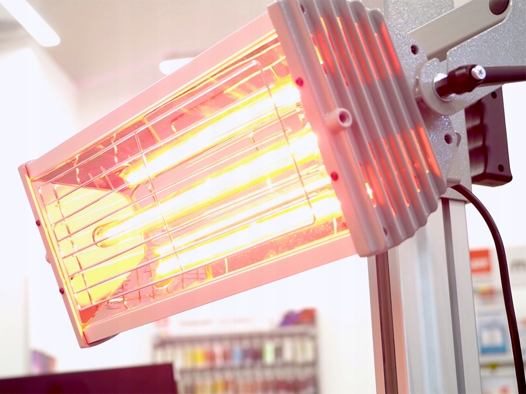 Оснащений однією лампою потужністю 1000 Вт і електромеханічний таймер. Призначений для швидкого та дрібного SPOT/SMART ремонту. Обігрівач випромінює короткохвильове інфрачервоне випромінювання. Колір лампи - червоний (рубін). Модернізовано шасі та колону з фіксатором робочої висоти касети.
