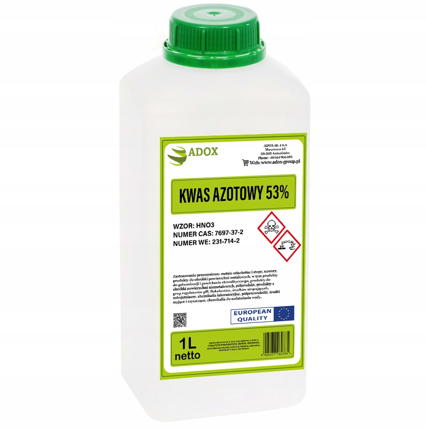 Оплачивая «1л - КИСЛОТА АЗОТНА 53% - ADOX», вы можете быть уверены, что данный товар из каталога «Остальные» будет доставлен из Польши и проверен на целостность. В цене товара, указанной на сайте, учтена доставка из Польши. Внимание!!! Товары для Евросоюза, согласно законодательству стран Евросоюза, могут отличаться упаковкой или наполнением.