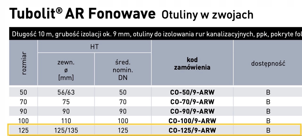 1m OTULINA rur kanalizacyjnych DN 125/135mm gr.9mm