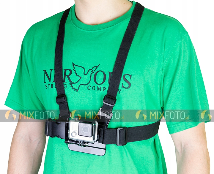 Нагрудне кріплення — чудове рішення для зйомки з дещо нижчої перспективи. Ідеально підігнане кріплення для рами, ідеальне для зйомок під час їзди на мотоциклі, велосипеді, лижах, роликах, сноуборді та багато іншого.
