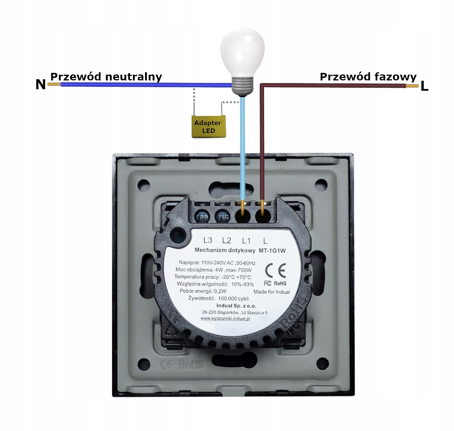 - делікатне блакитне підсвічування полегшує пошук перемикача в темряві