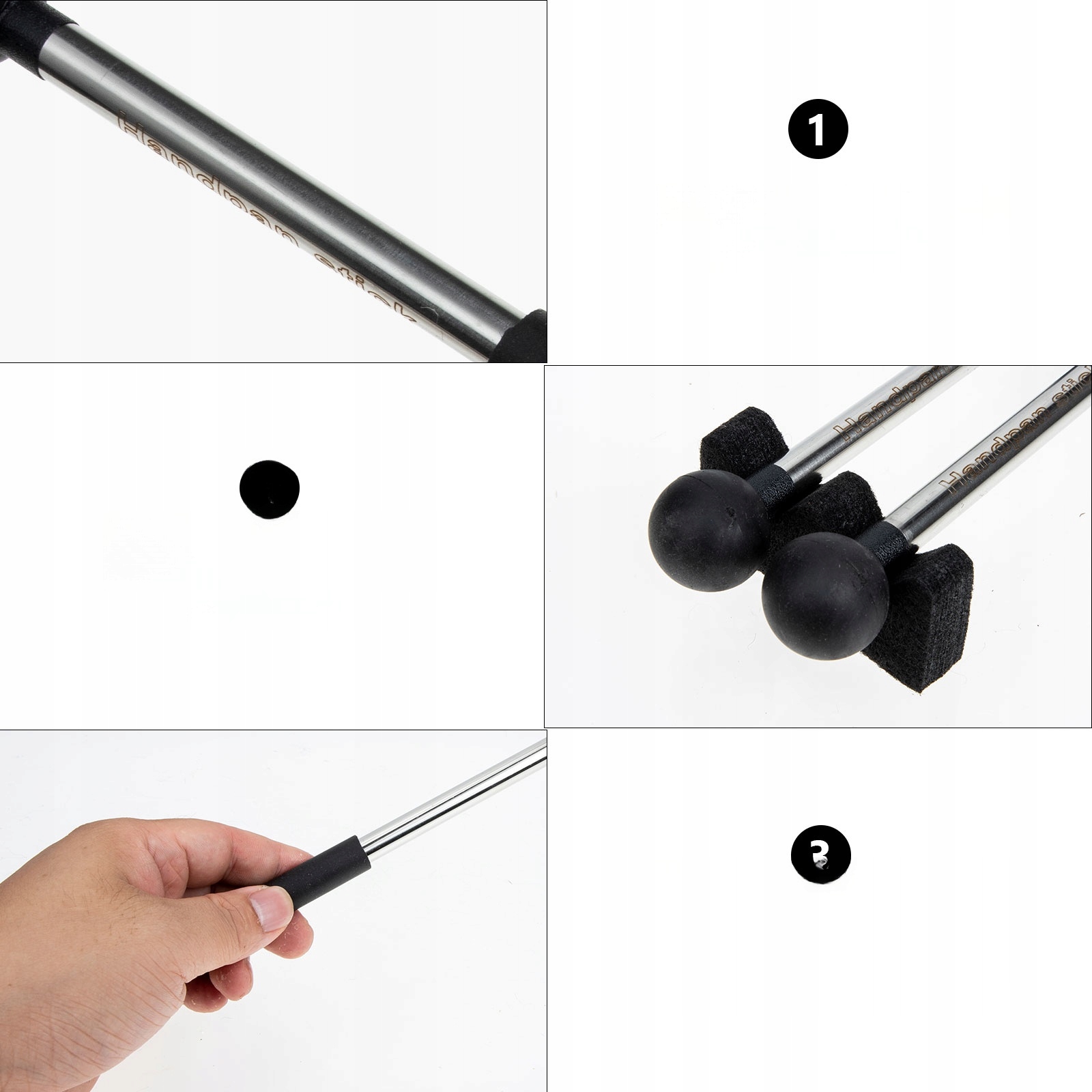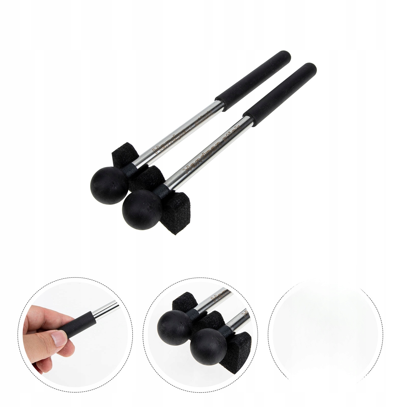 1PARA CZARNE PAŁKI DO JĘZYKOWEGO BĘBNA METALOWO-GUMOWE, TRWAŁE