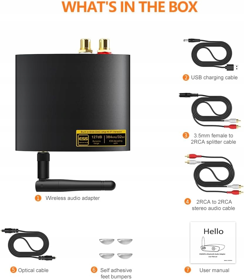 - [Advanced Chipset] Приймач Bluetooth оснащено вдосконаленим набором мікросхем, який підтримує декодування без втрат MP3 / aptX-HD / aptX / aptX-L / aptX-LL / AAC / SBC і LDAC. Завдяки новітній технології Bluetooth 5.3 приймач Bluetooth для стереосистеми може мати зворотну сумісність із Bluetooth 5.0 / 4.2 / 4.0 / 3.0 і забезпечувати ваші пристрої більш стабільним бездротовим з’єднанням.