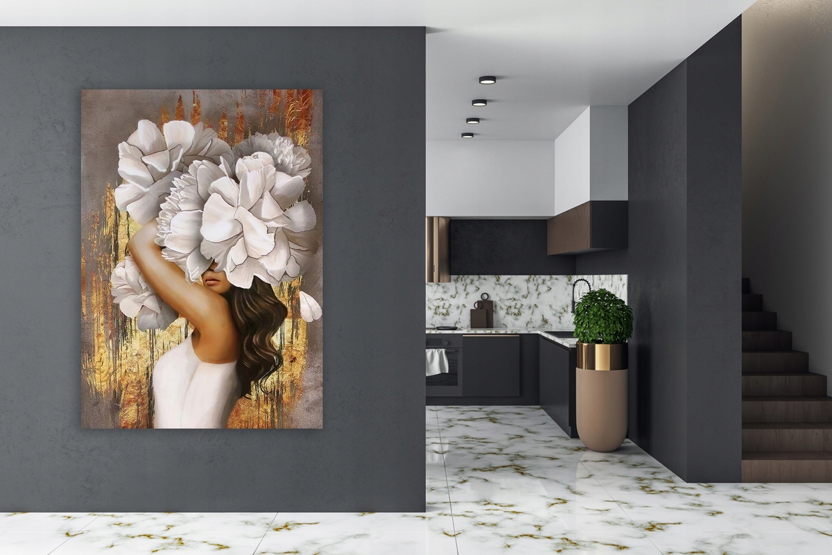 1x КАРТИНА ЖІНКИ З КВІТАМИ НА ГОЛОВІ GOLD GLAMOUR 50x70