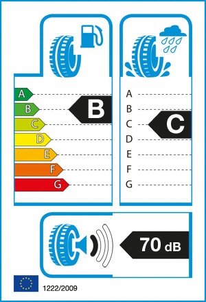 Оцінка зчеплення вказує на те, наскільки добре шина працюватиме на мокрій поверхні, і її продуктивність оцінюється за шкалою від A до G. Рейтинг A вказує на короткий гальмівний шлях на мокрій поверхні.