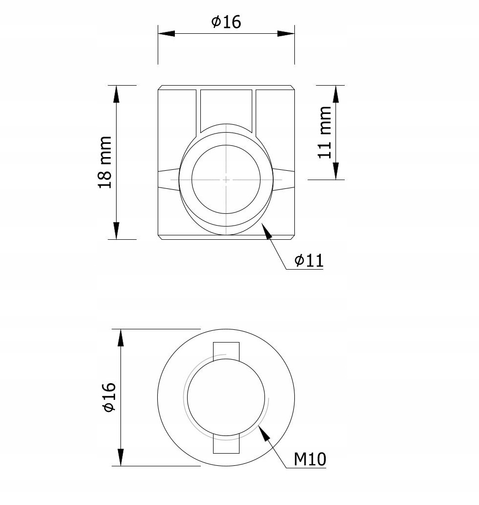 Стовбурний з’єднувач Ø 16 мм – це суцільне меблеве з’єднання, призначене для встановлення, зокрема, стільці, лави, тумбочки та інша дрібна ящикова меблі. З'єднання кріпиться за допомогою метричної різьби М8 + муфти (сталеві або пластикові муфти купуються окремо). У зчіпці є отвір для бобів, який, якщо протидіяти установчому гвинту в стовбурі, з’єднує обидва елементи разом і створює міцне з’єднання, яке можна збирати та розбирати багато разів без втрати якості з’єднання.