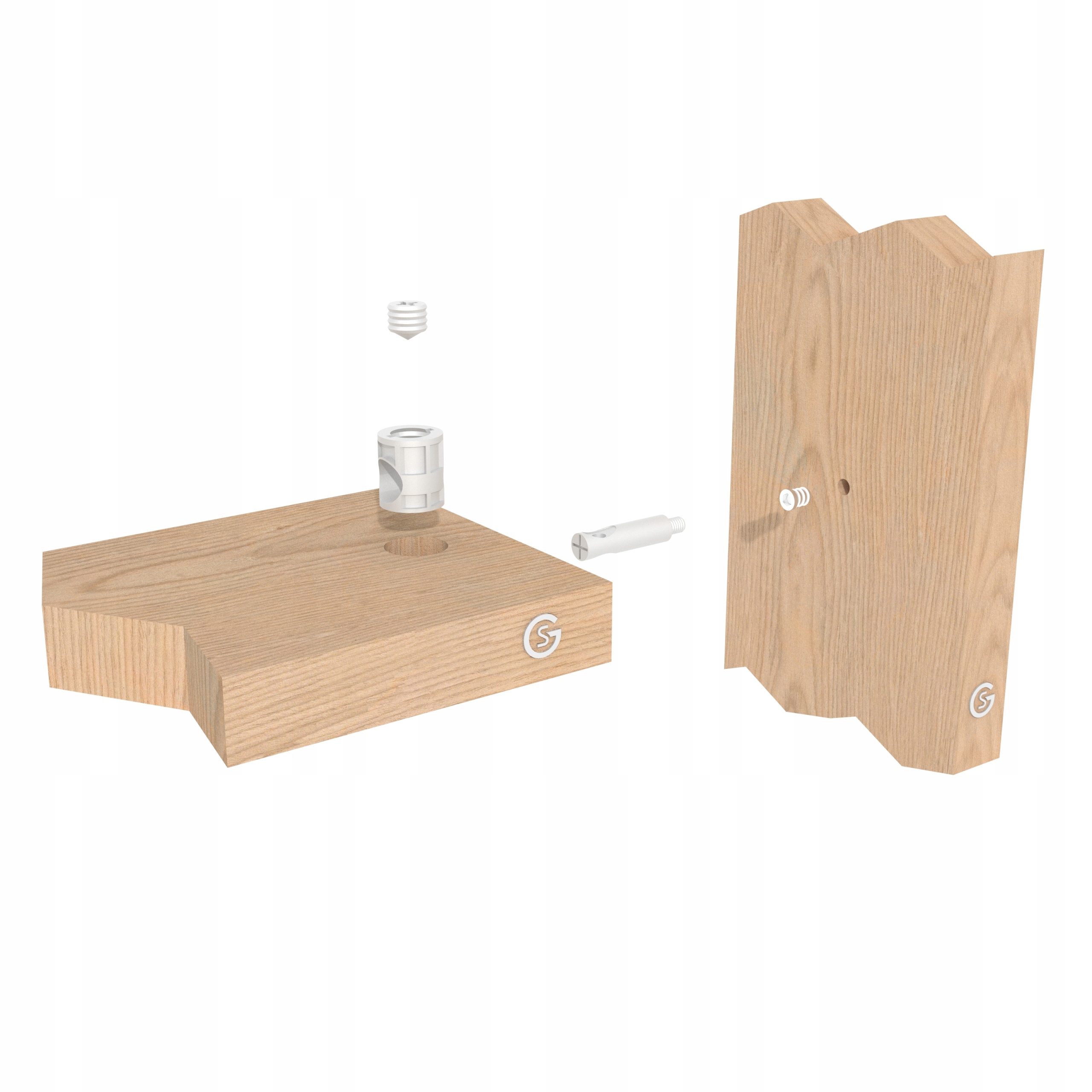 Встановлення виконується шляхом свердління отвору Ø 16 мм у платі, яку ми хочемо з’єднати, і отвору для шпильки діаметром 10,5 мм, потім збираємо штифт, вкручуючи його в гніздо М8. Після складання шпильки вставте ексцентрик в отвір Ø 16 і з’єднайте його з контргвинтом.
