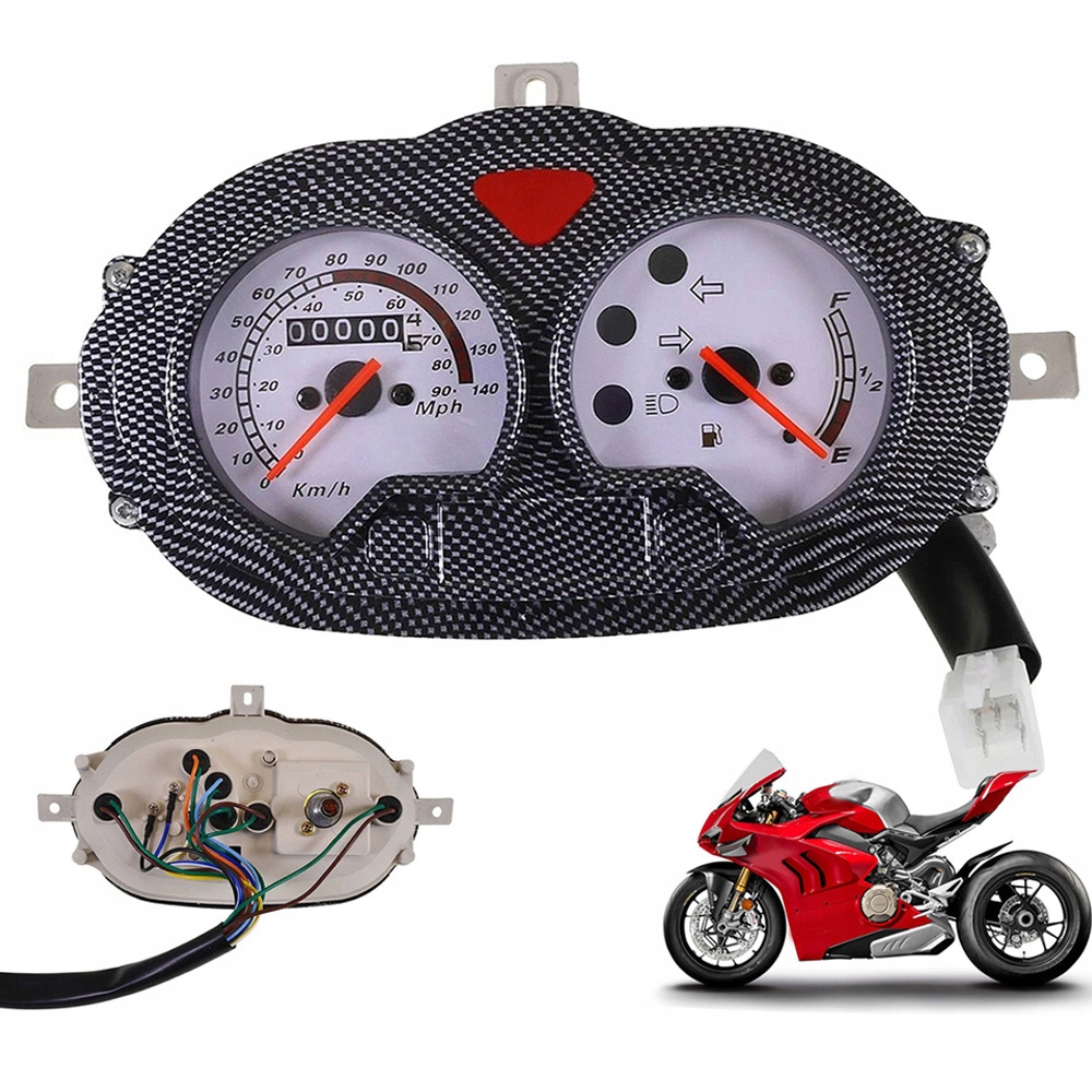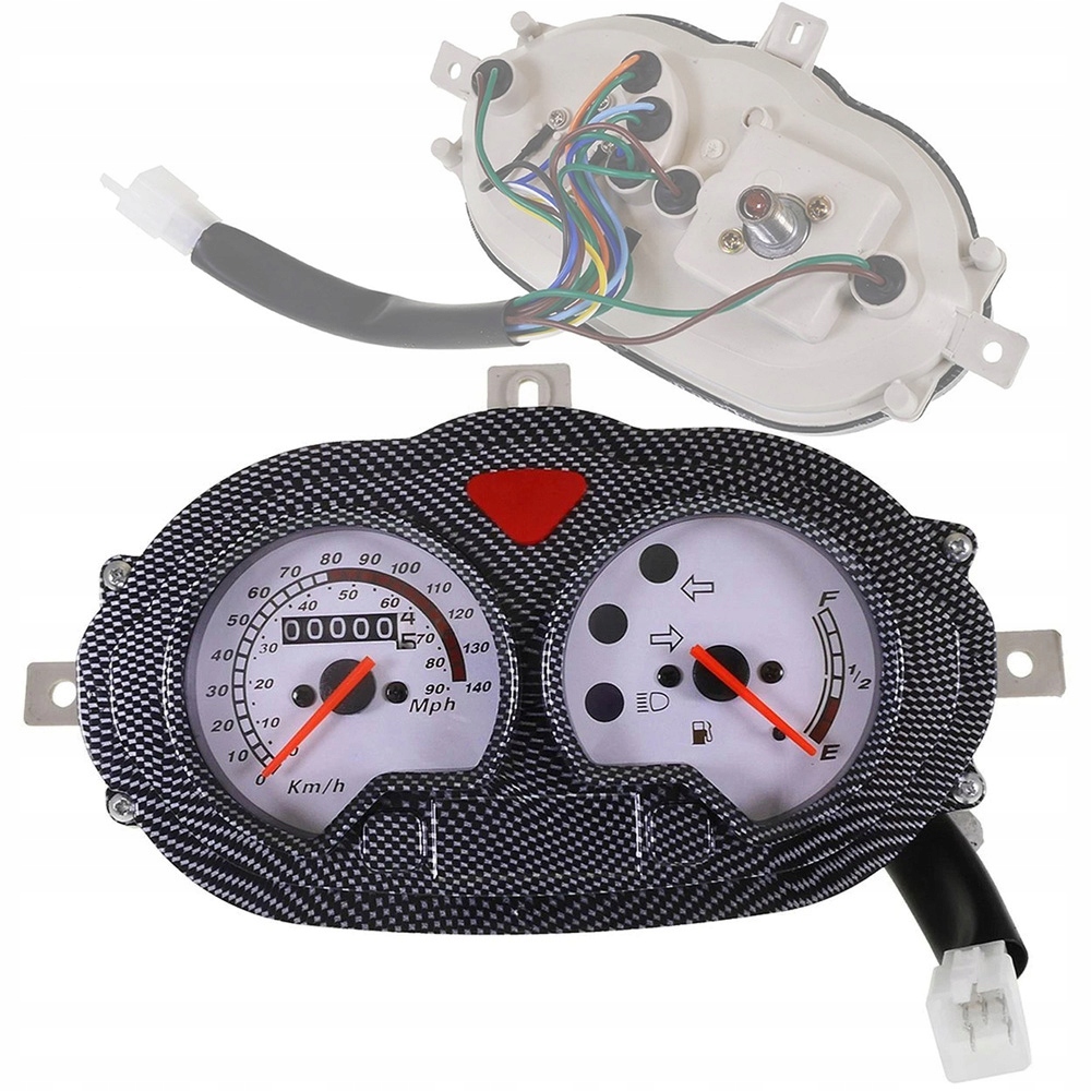 Цей карбоновий спідометр для скутера додасть вашому скутеру спортивного характеру та елегантності. Карбоновий вигляд надає йому сучасний вигляд і ідеально підходить до скутера. Завдяки індикації спідометра в км/год і миль/год у вас завжди буде все під контролем. На спідометрі також є миготливий індикатор і дисплей рівня палива та пробігу. Цей спідометр, простий у встановленні, є необхідним гаджетом для кожного користувача скутера, який хоче поєднати стиль і функціональність за привабливою ціною.