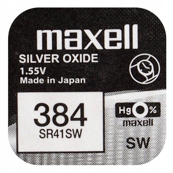 1x срібний акумулятор Mini Maxell 384/392 / SR 41 SW