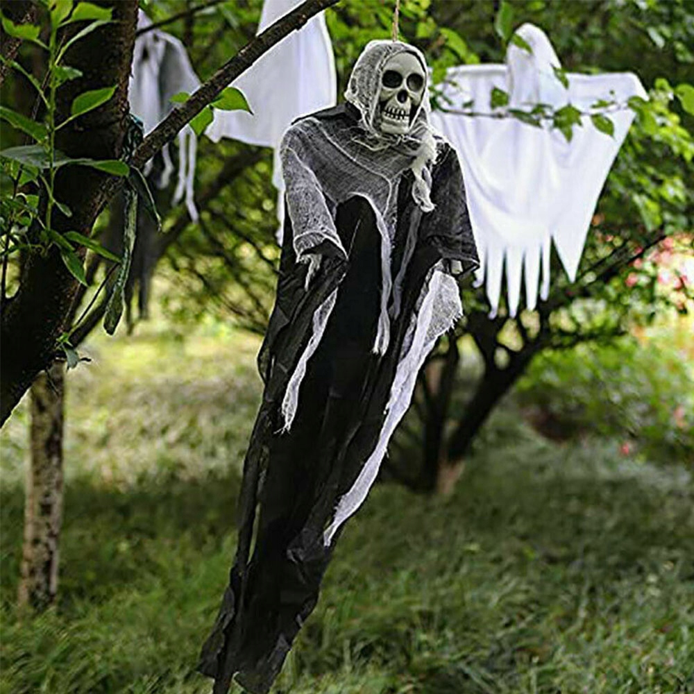 викликає озноб під час святкувань на Хеллоуїн завдяки висячим жахливим скелетам 85 см, що ідеально підходить для створення жахливої атмосфери.