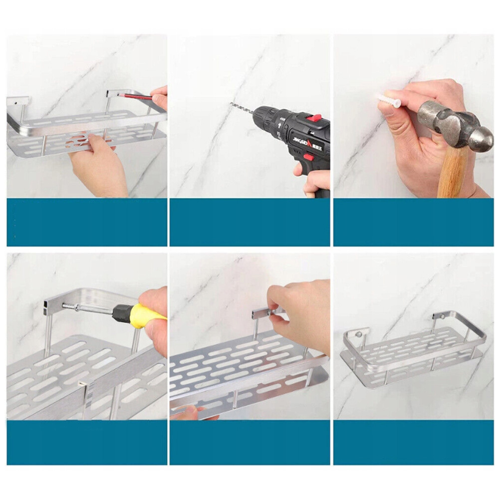 🚿 🚿 🚿dwiemie Варіанти кріплення: Вибирати з самостійного або з просвердленими отворами, залежно від стіни. Наша душова полиця може бути встановлена самостійним клеєм на чистих, гладких, плоских стінах (наприклад, плитка, скло); У випадку з нерівними стінами (наприклад, пофарбованими, оштукатурними шпалерами тощо), душова полиця також може бути встановлена шляхом буріння для більшої стабільності та постачається з буровими аксесуарами.