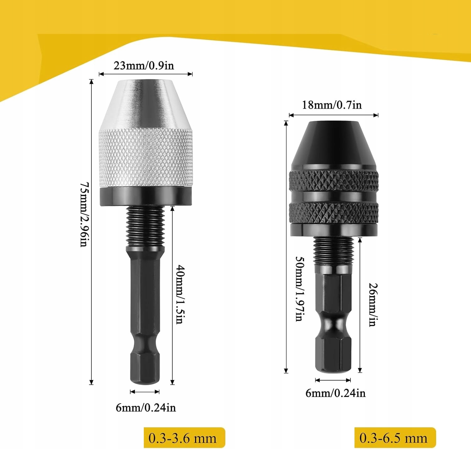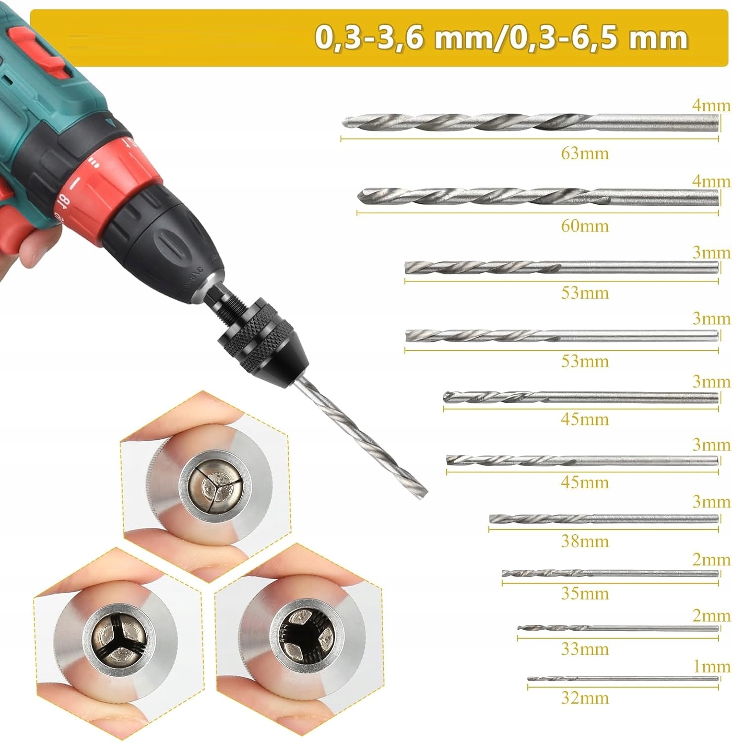 Універсальний набір для саморобних та професіоналів! Два шестикутні ручки з швидким роз'ємом дозволять швидко замінити шматочки та свердла без використання додаткових інструментів. Стабільні кріплення гарантують точне буріння, а прикріплені замінні свердла працюватимуть під час роботи в дереві, пластиці або металі.