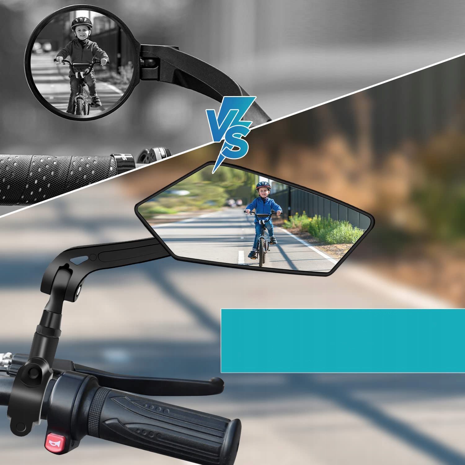 🚲 🚲 🚲 🚲 ретродукт дзеркала HD: Наше зворотне велосипедне дзеркало використовує скляну лінзу з високою роздільною здатністю 5,9 дюйма/15 CM - 2,75 дюйма/7 см, дзеркальне дзеркало з високою роздільною здатністю робить зображення більш реалістичним, без деформації, без Запаморочення, більше велосипедного дзеркала дозволяє чітко спостерігати за зустрічними транспортними засобами на спині, що робить подорож безпечнішою та простішою. Ви можете вільно встановити дзеркало на велосипеді під прямим кутом, щоб отримати кращий вигляд і побачити речі з різних напрямків, що може ефективно уникнути дорожніх аварій та покращити безпеку водія.