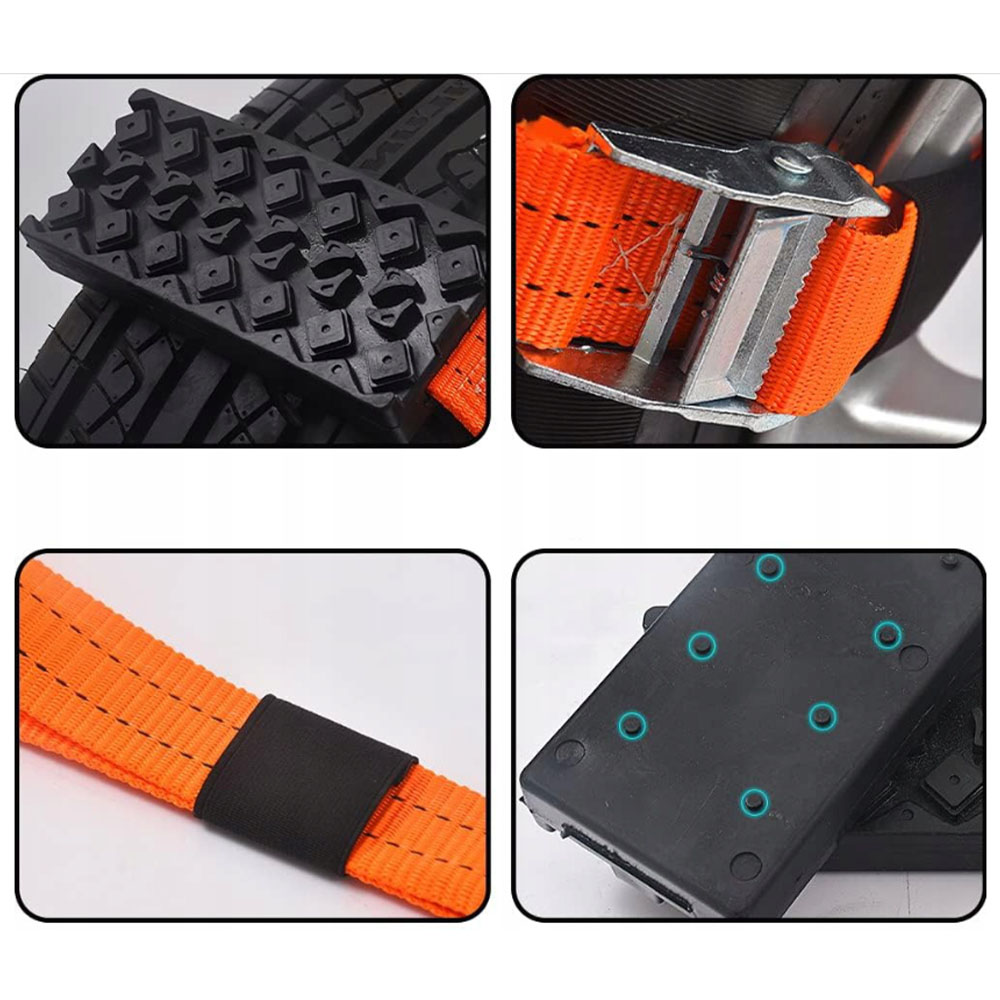 Автомобіль Сніговий ланцюг працює добре незалежно від того, застрягаєте чи повзати на піску, грязі чи снігу. Спеціальна конструкція забезпечує хорошу адгезію і не пошкоджує шини або дорожню поверхню.