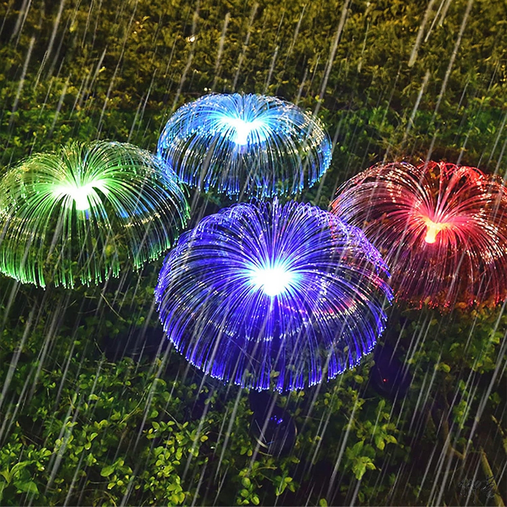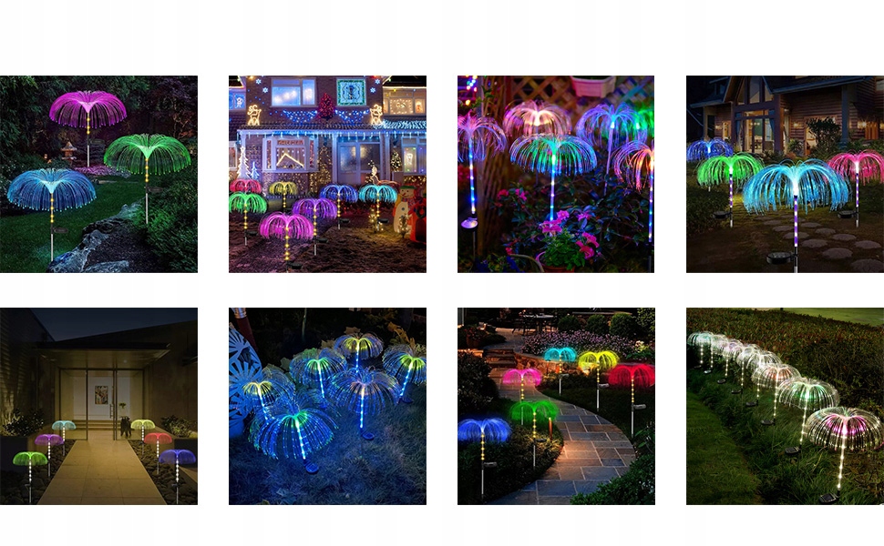 садові прикраси у формі медуз для зовнішньої частини мають легкі намистини з 7-кольоровою зміною RGB та гарною передачею світла, що особливо красиво вночі. Ці сонячні світильники для саду на відкритому повітрі та чарівності завдяки своїм яскравим кольорам та створюють романтичну атмосферу.