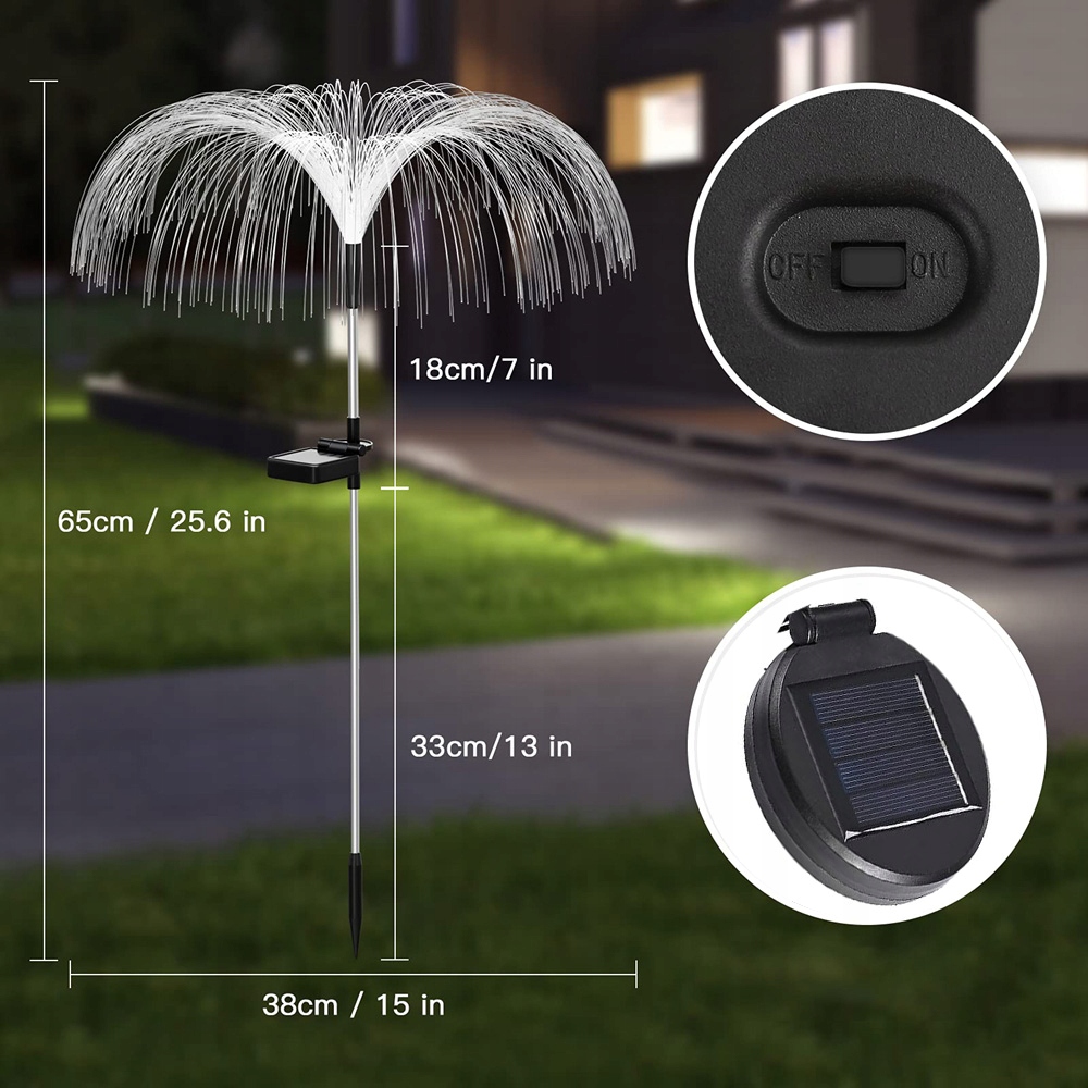 Сонячні світильники у формі медуз для зовнішньої частини мають чутливі вбудовані датчики світла. Досить увімкнути та поставити в землю, а сонячні світильники для зовнішнього використання автоматично заряджають акумулятори протягом дня сонячною енергією і автоматично вмикаються в сутінках.
