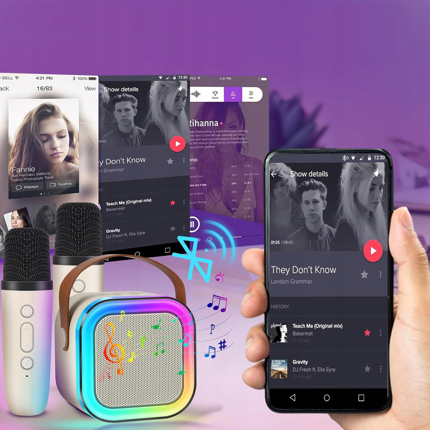✔ на вечірках - створіть незабутню атмосферу під час сімейних зустрічей, днів народження чи будинків завдяки функції караоке та ефективної підсвічування. > ✔ Розслаблення - Використовуйте високоякісні динаміки, щоб слухати улюблену музику, подкасти або аудіокниги вдома. > ✔ для навчання та розвитку - допомагає розвивати вокальні навички, самовпевненість та здібності до публічного виступу. І портативний дизайн, набір можна взяти у відпустці, пікніки або поїздки, щоб насолоджуватися музикою в будь -якому місці.