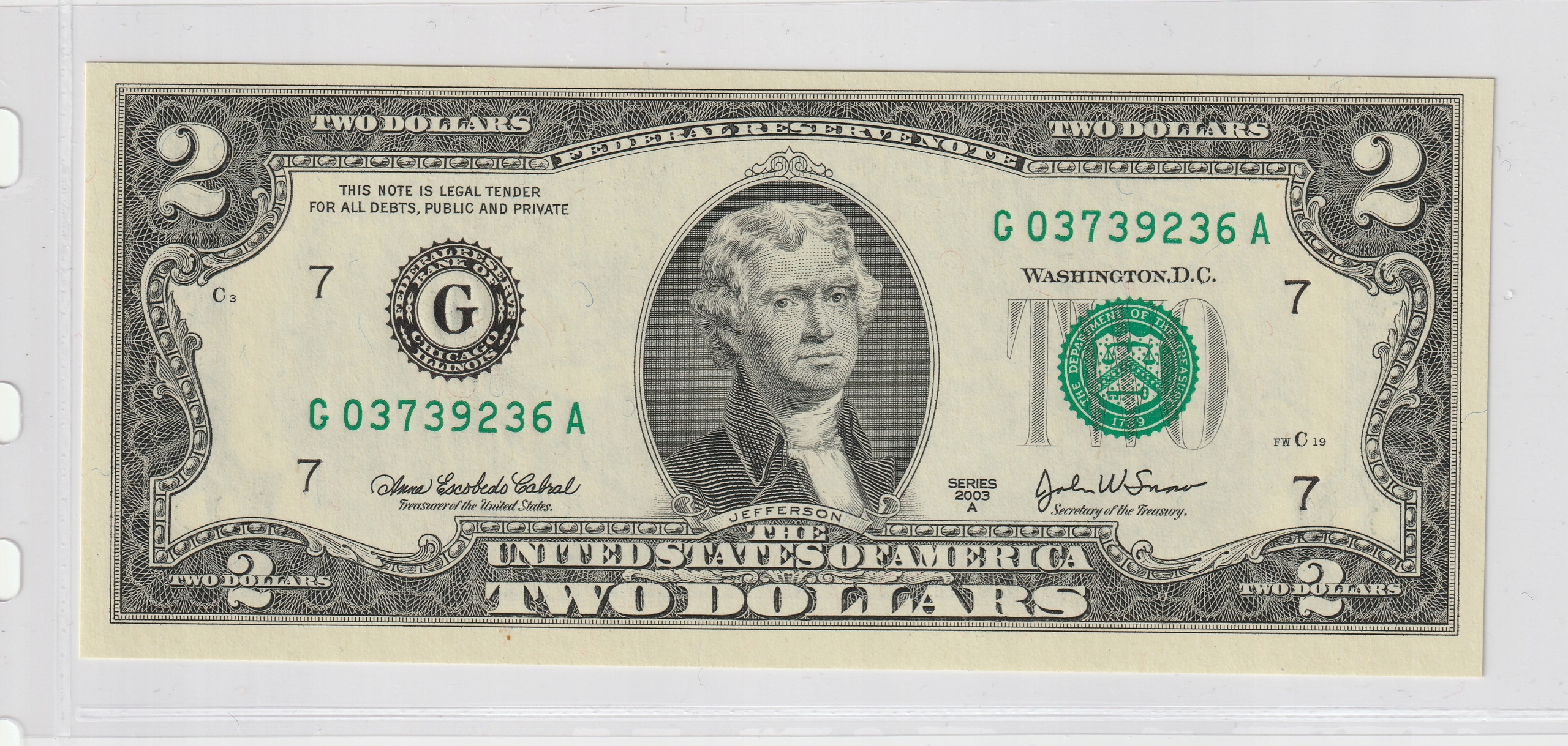 2 $ TWO DOLLARS USA 2003A SERIA G CHICAGO UNC