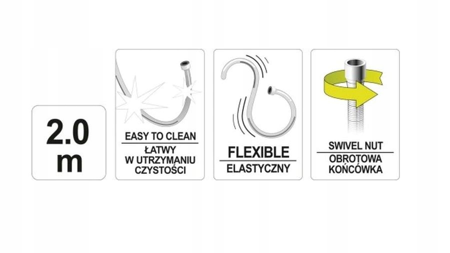 2,0 м шланг з душем ПВХ. Гладкий хром-білий анти-tist 75653