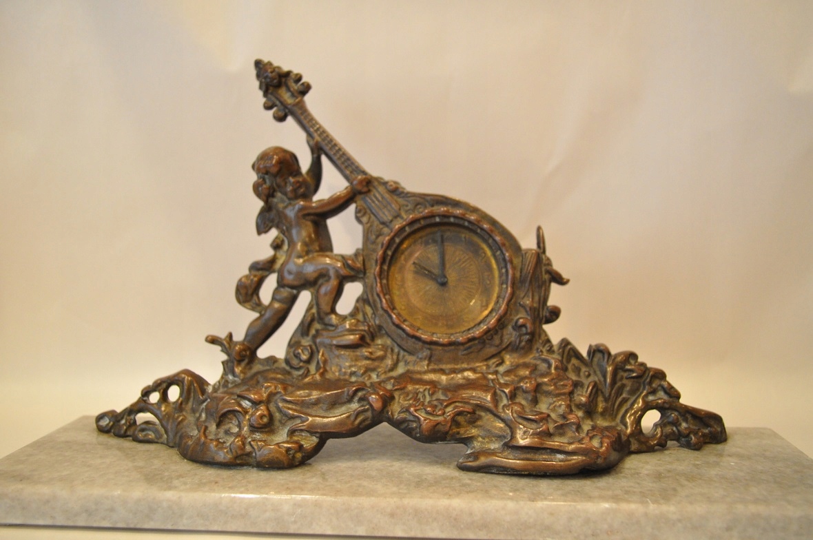 2,3 кг / СТАРИЙ КАМІННИЙ ГОДИННИК - БРОНЗОВИЙ КОРПУС - МАРМУРОВА ОСНОВА /729