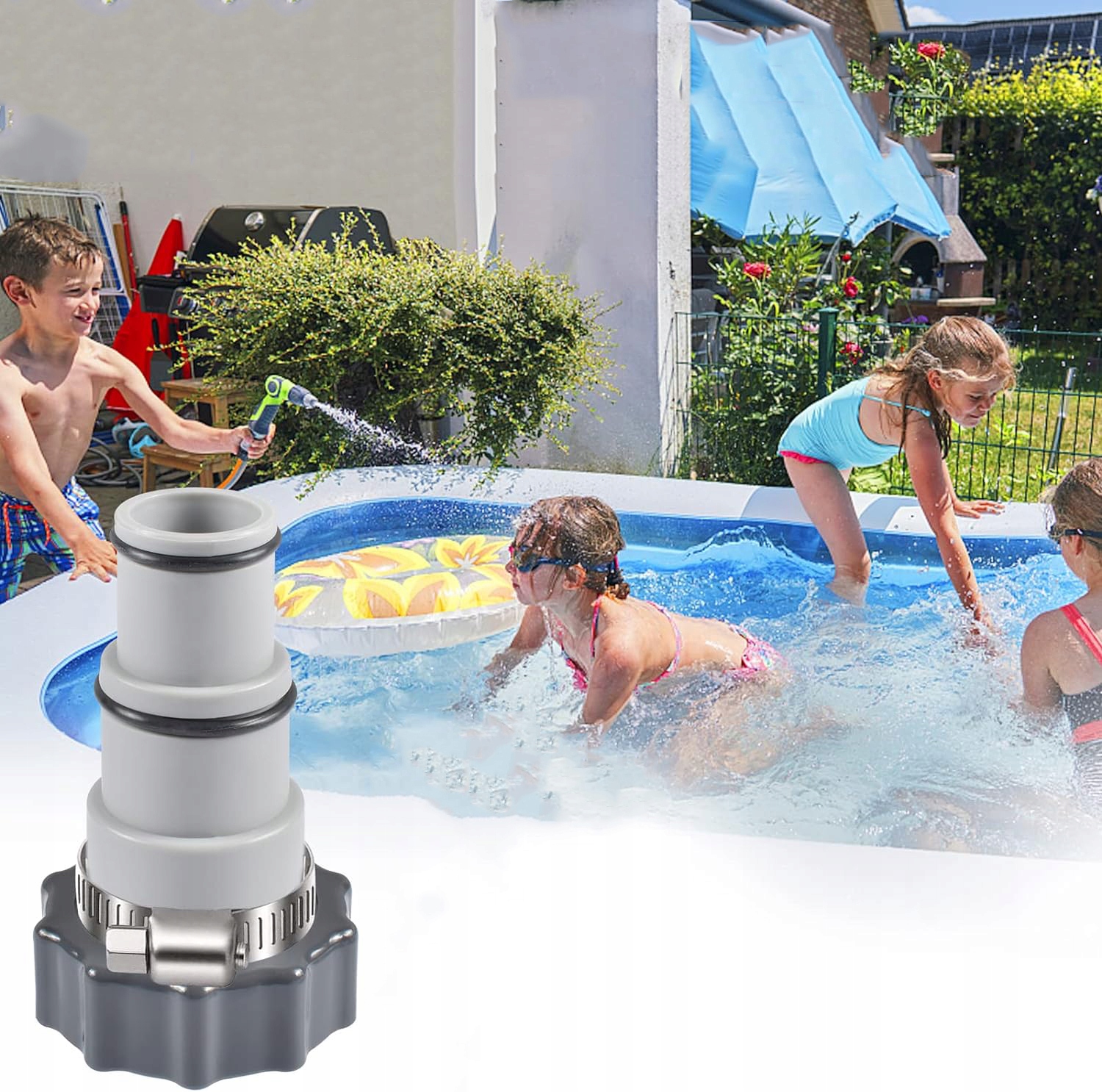 ✅ Високоякісний матеріал: Адаптер для басейну виготовлений із стійкого до корозії ПВХ, міцного та довговічного. Шланг з гумовим кільцем надійно прикріплений, утворюючи герметичний зазор для запобігання витоку води.