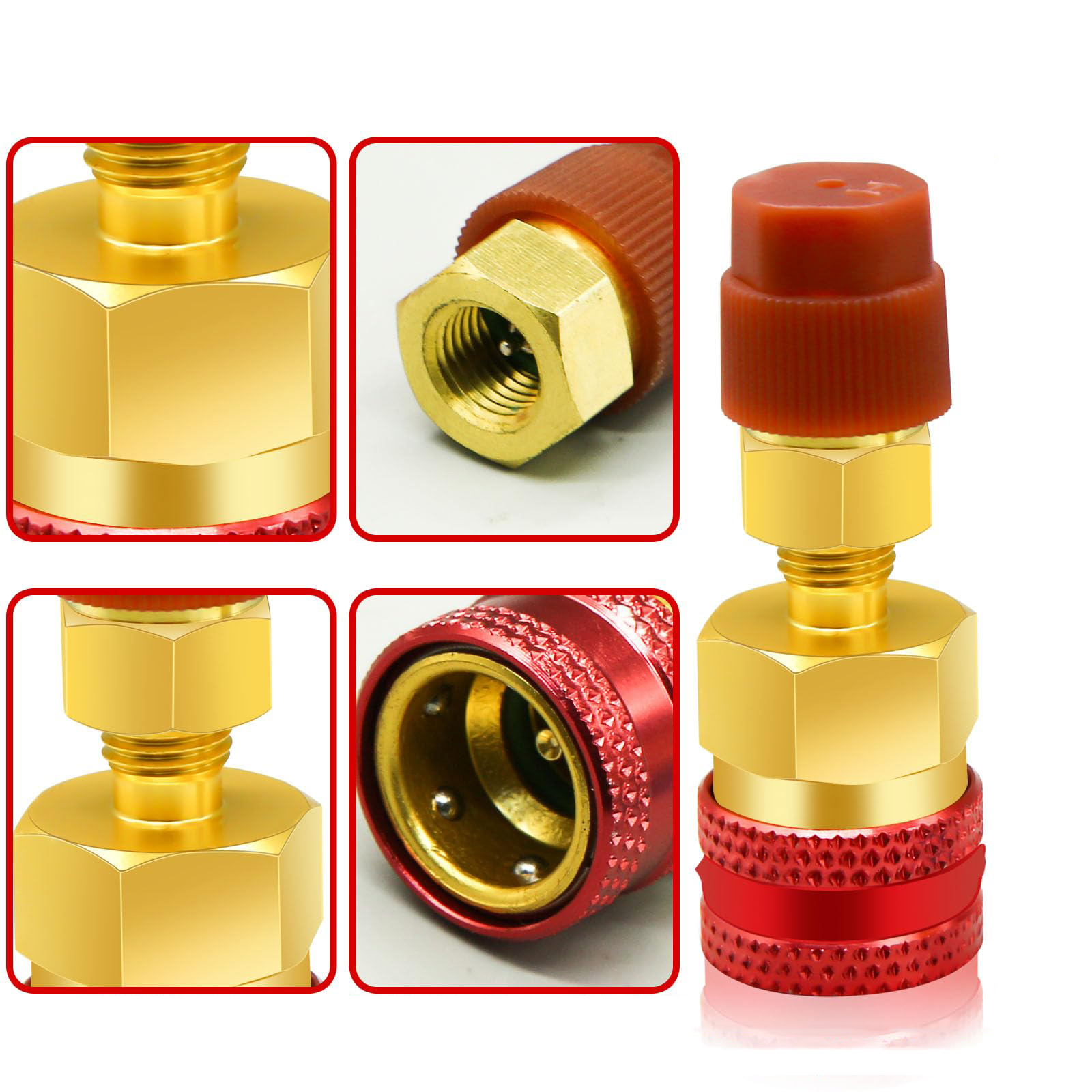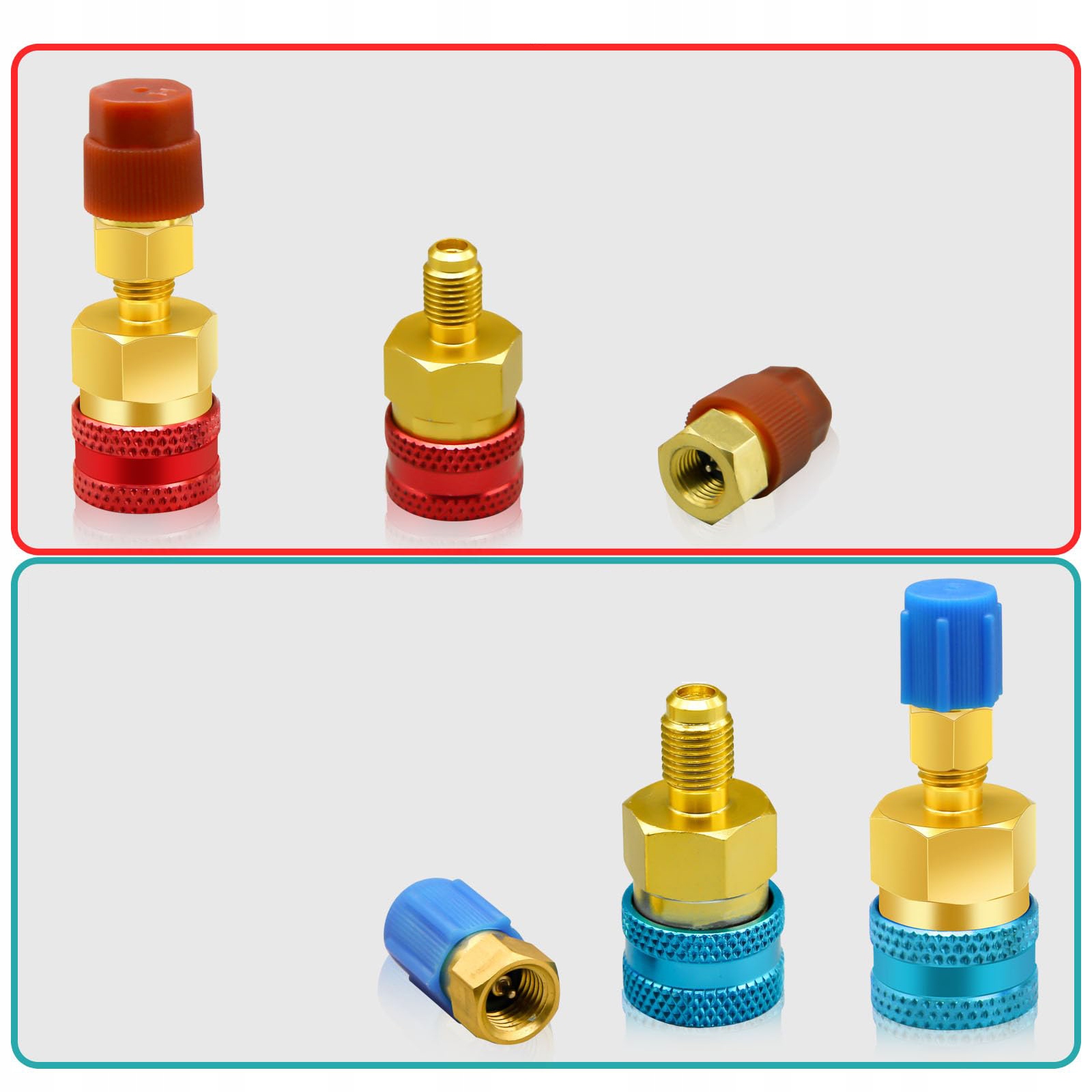 Набір холодильних швидких з'єднань підходить для перетворення R134A до R1234YF. Комплект перетворення високого/низького тиску R1234YF підходить для зарядки холодоагенту R134A/R12 на R1234YF, заряджання холодоагенту R1234YF, заряджання холодоагенту R134A, змія за зарядку фріна в холодильнику та вимірюванні розподілу змінного струму. Він також використовується для діагностичних, відновлення та евакуаційних тестів.