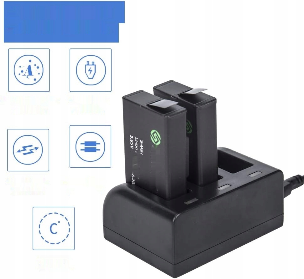2 акумулятора Smatree із 3-канальним зарядним пристроєм, сумісний із GoPro Hero Max