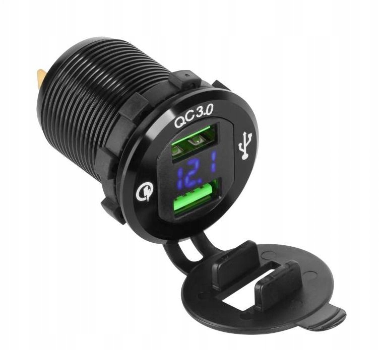 2xUSB автомобільний зарядний пристрій із функцією швидкого заряджання та вимірювачем напруги