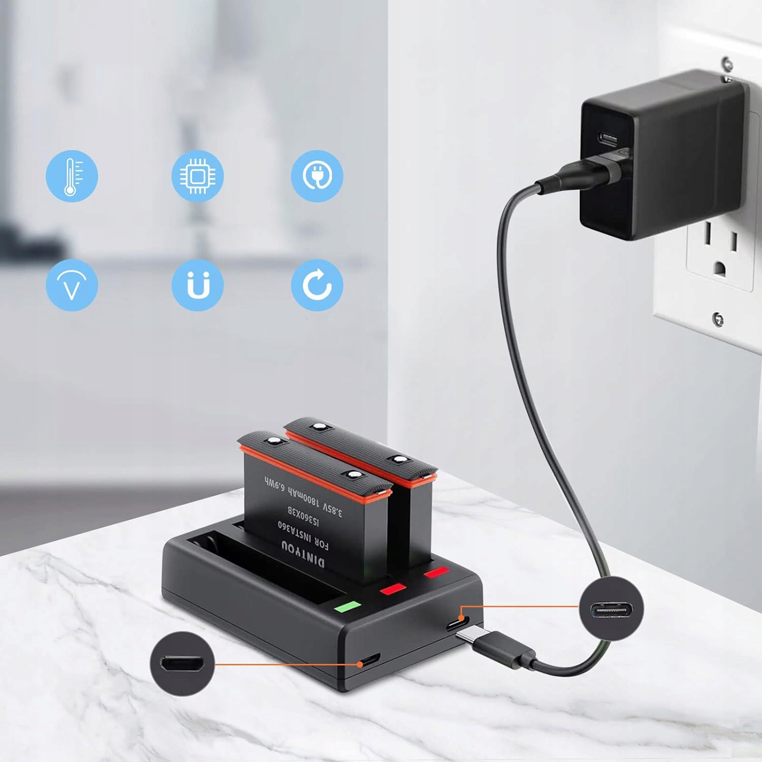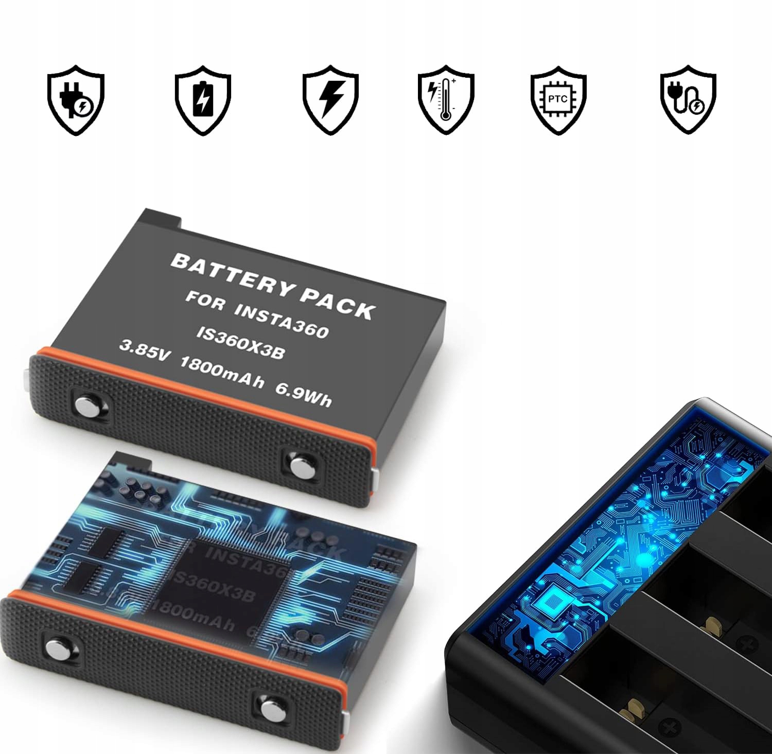 2 батареї та зарядний пристрій для Instita 360 x3 1800 mah 6,93 WH 3,85 V