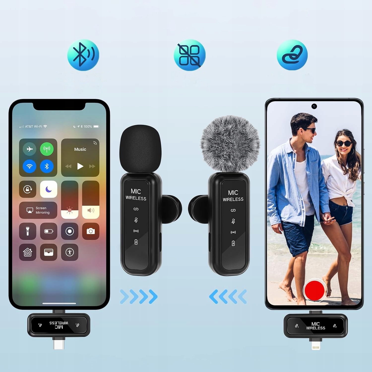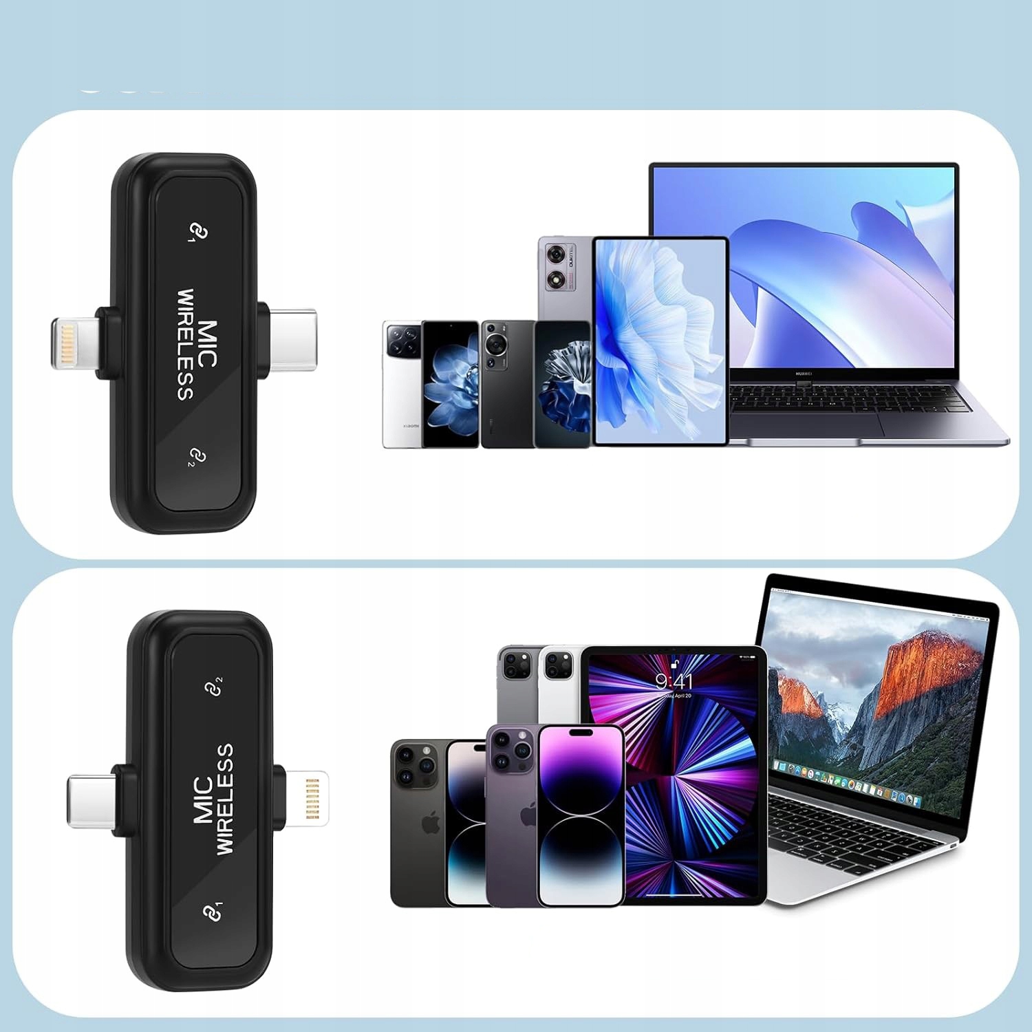 【Сумісність із більшістю пристроїв】Приймач оснащено інтерфейсами Type-C, а бездротовий мікрофон сумісний із iPhone 16, iPhone 16 Plus, iPhone 16 Pro, iPhone 16 Pro Max та іншими iPhone, iPad, смартфонами з Android, планшетами тощо.
