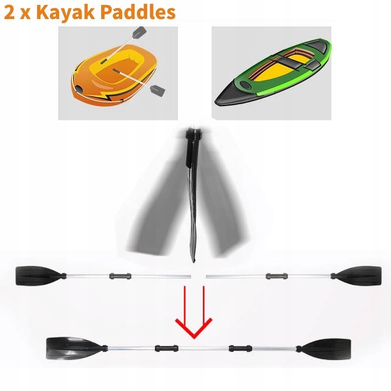 5. Знімна конструкція, легка в перенесенні та зберігання, коли вона не використовується. 2 весла можна зібрати разом, щоб використовувати їх як один довгий весл.