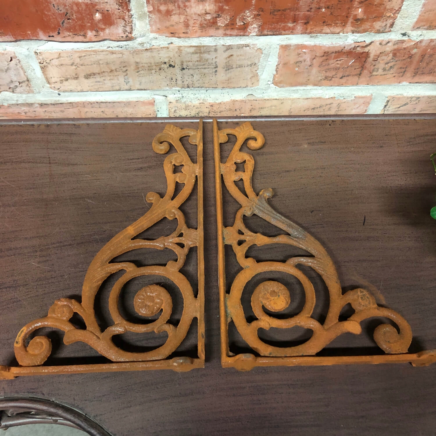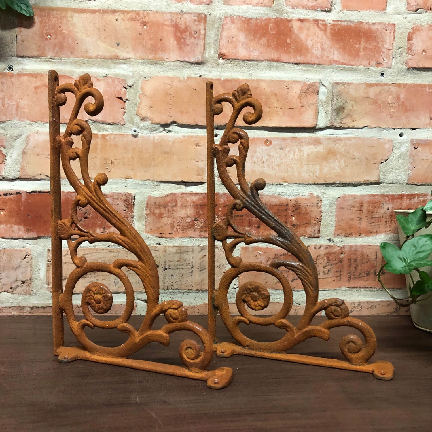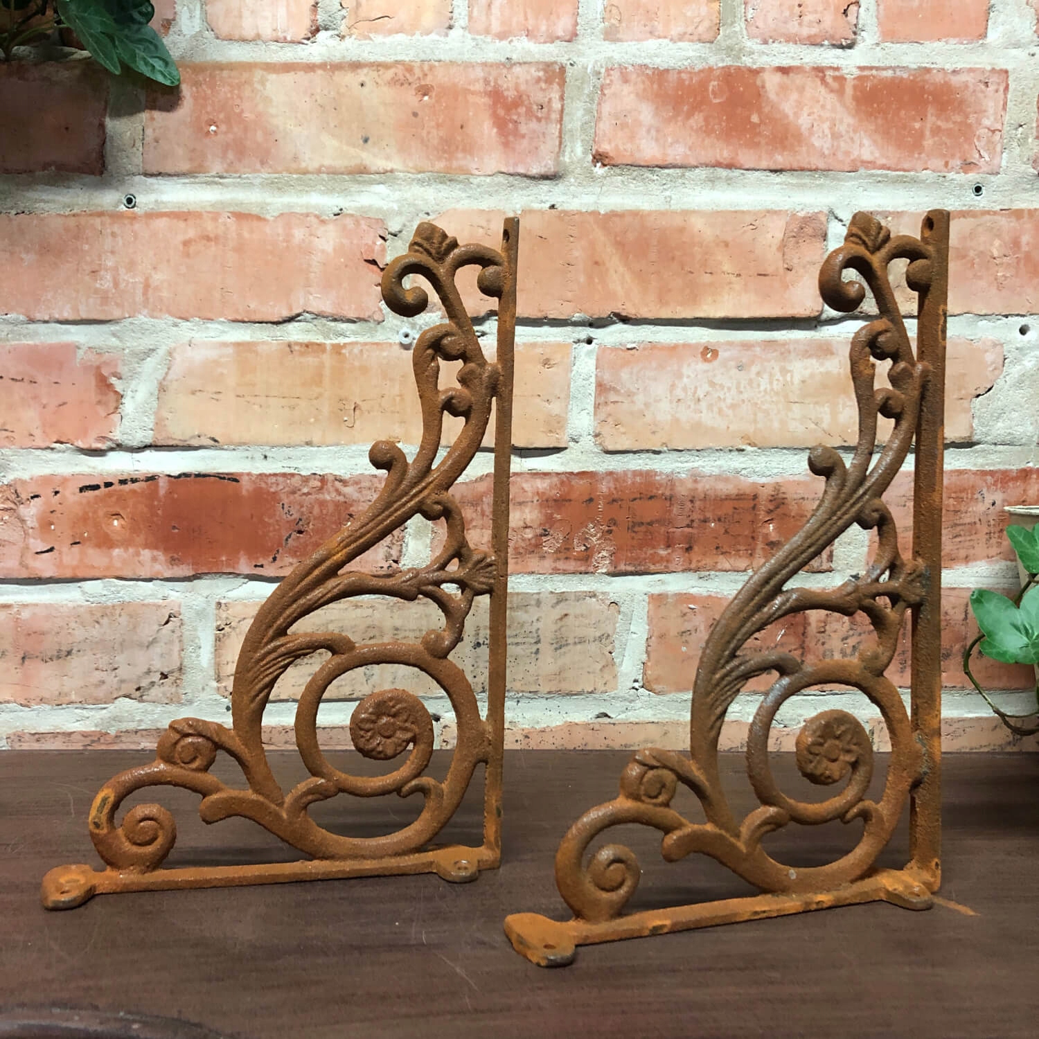 2 чавунні стінові кронштейни коричневі опори для полиць сільського стилю