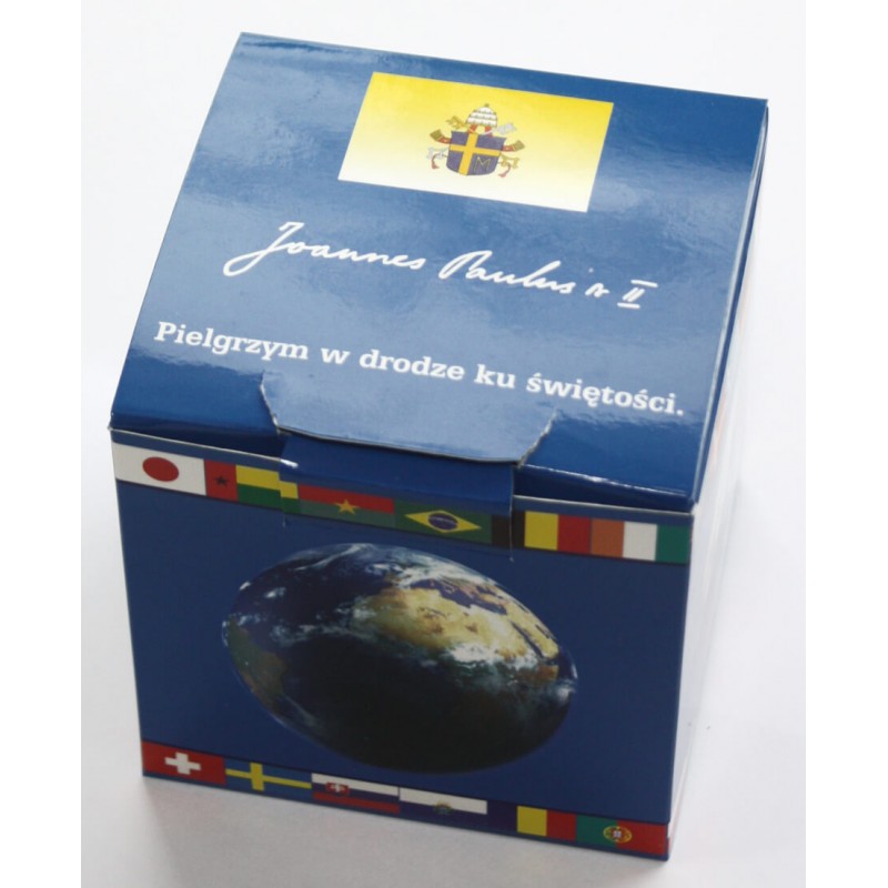 Красива монета із зображенням Івана Павла ІІ поміщена в музичну скриньку у формі кулі.